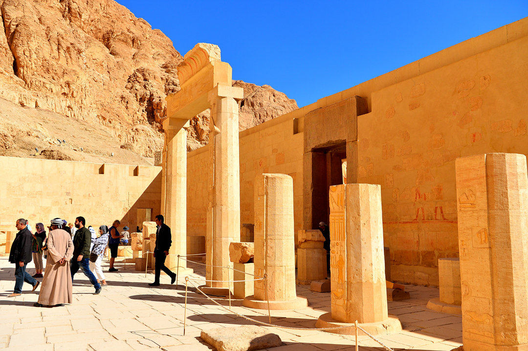 장제전을 둘러싸고 있는 바위산 너머에 왕들의 계곡이 있으며 하트셉수트 여왕의 무덤도 그곳에