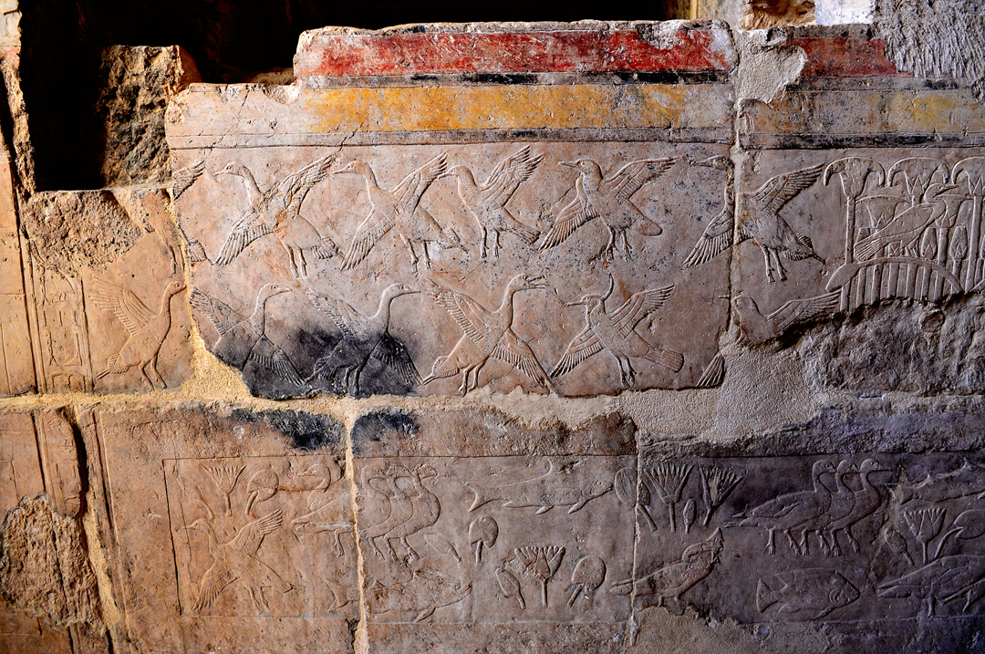 각종 새들과 식물에 대한 돋새김도 많이 보인다.