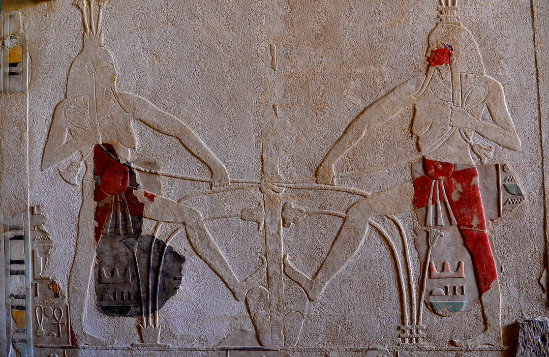 로터스와 파피루스를 나일의 신 하피가 하나로 묶는 의식으로 두 이집트의 통일을 상징한다.