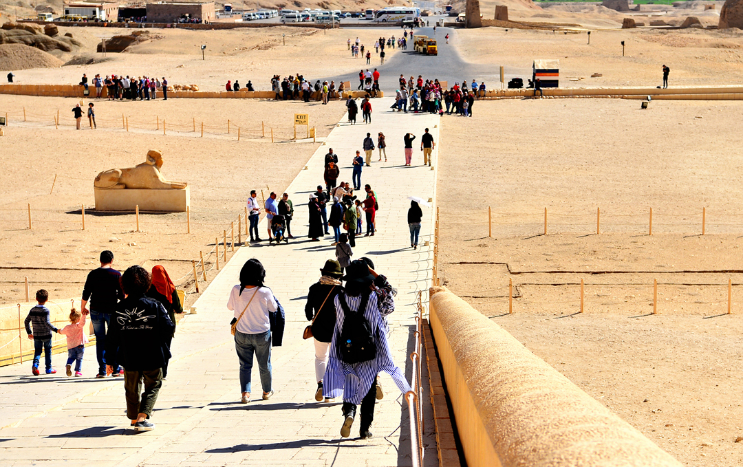 하트셉수트 장제전의 비탈길을 내려가는 모습이다.