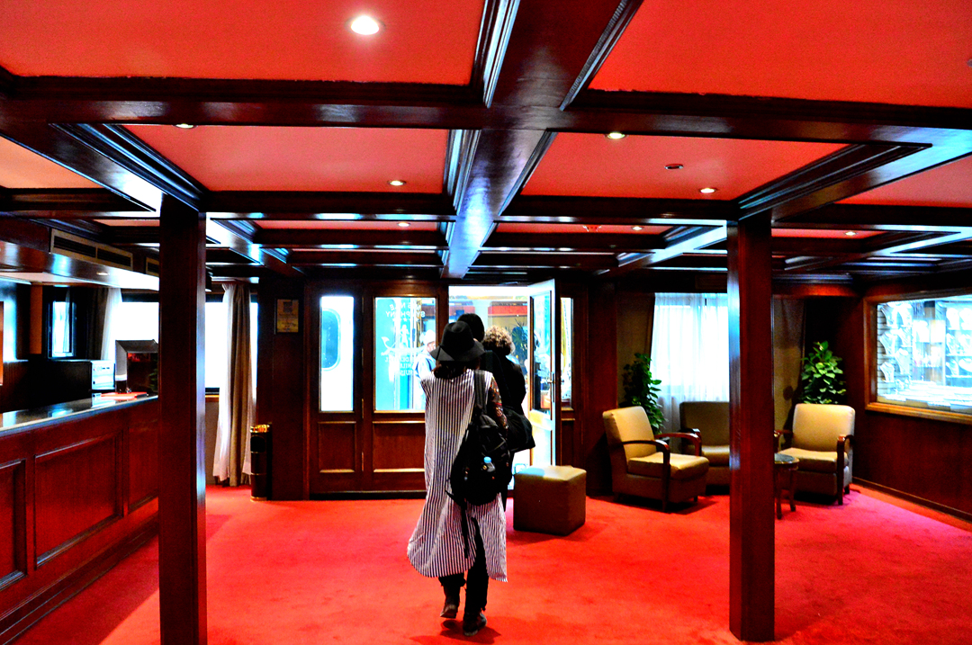 크루즈선들이 옆구리를 붙인 채로 정박되어 있는 탓에 연거푸 다른 크루즈선 안을 통과해야만 했다.