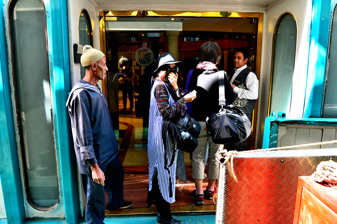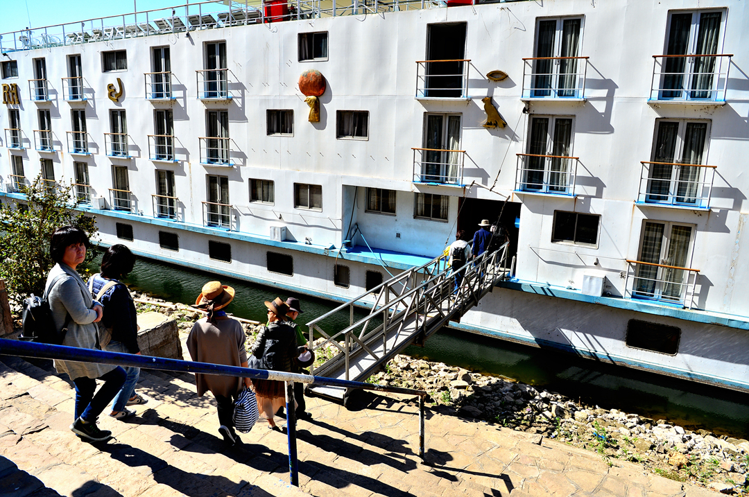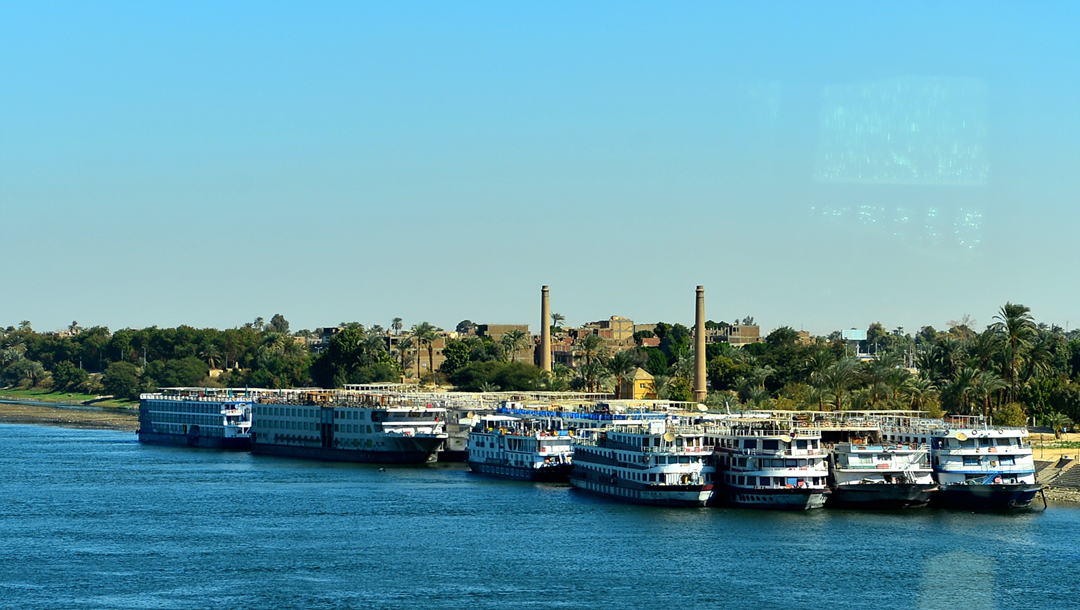 나일 강 동안에 정박해 있는 많은 크루즈선들도 보인다.