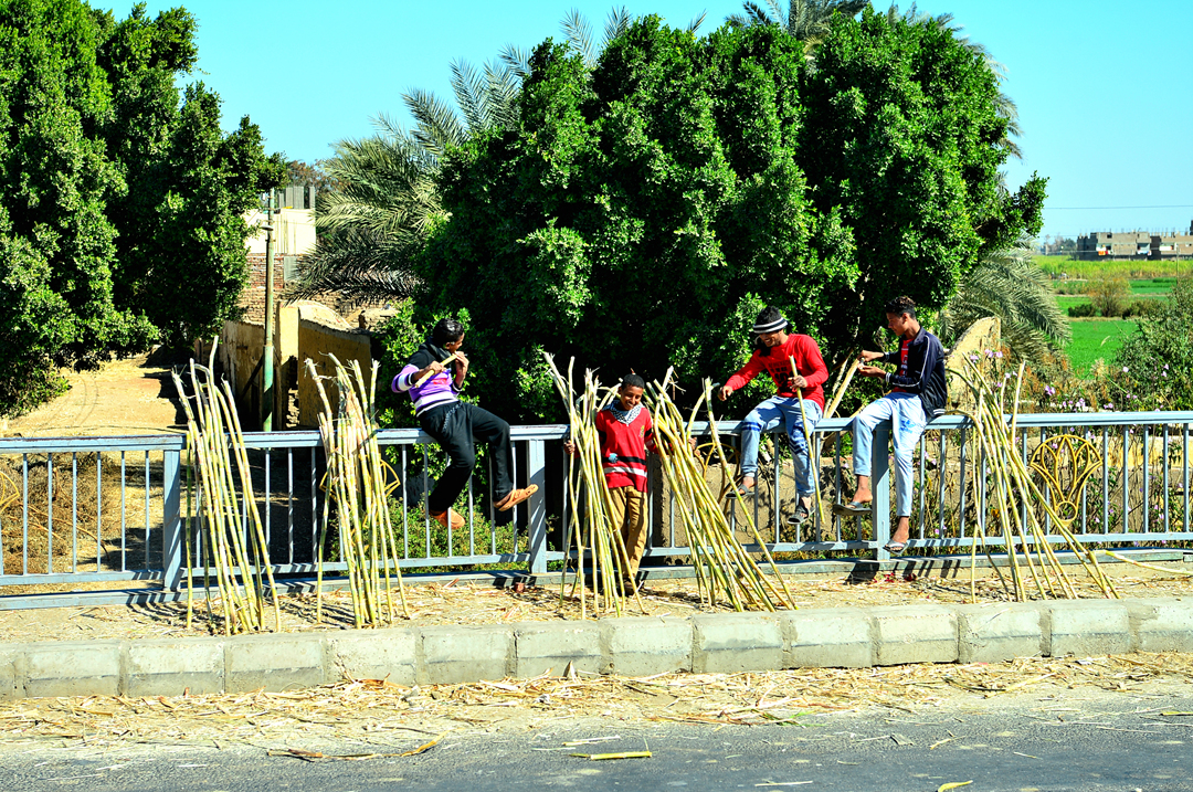 다리 난간에 사탕수수대를 세워 놓고 있는 아이들 모습도 보인다.