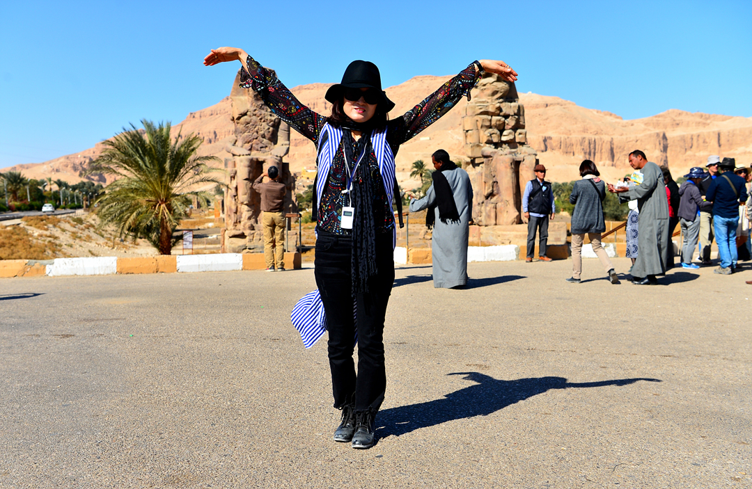 멤논 거상의 두 머리를 동시에 만져 보시겠다고 했는데~
