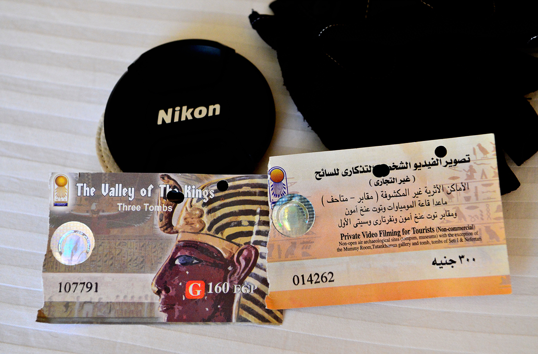 왕들의 계곡에서 3개의 무덤을 돌아볼 수 있는 티켓과 사진 촬영 허가권이다.