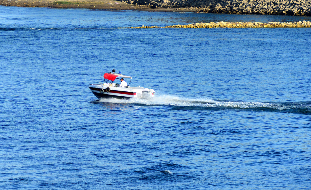 크루즈선 옆으로 바짝 다가선 작은 보트~