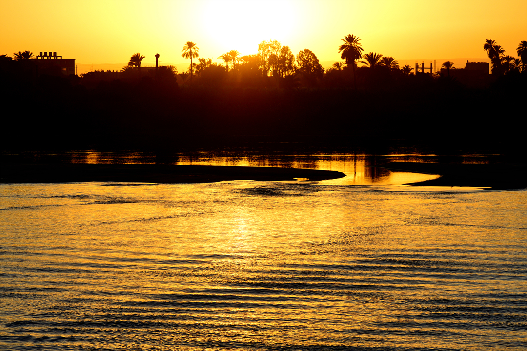 나일 강 크루즈 선상에서 맞이하는 석양이다.