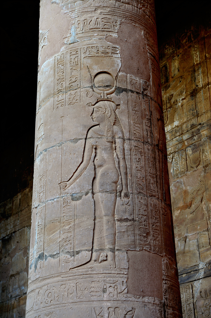 기둥에 새겨진 여신 하트호르의 아름다운 모습이다.