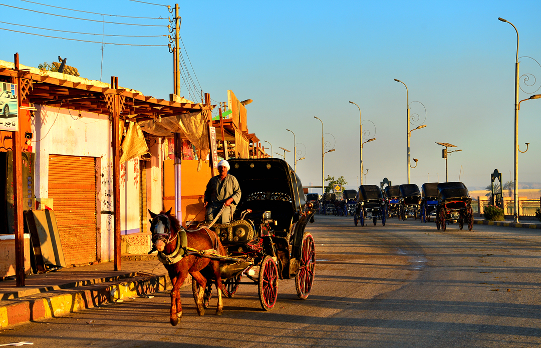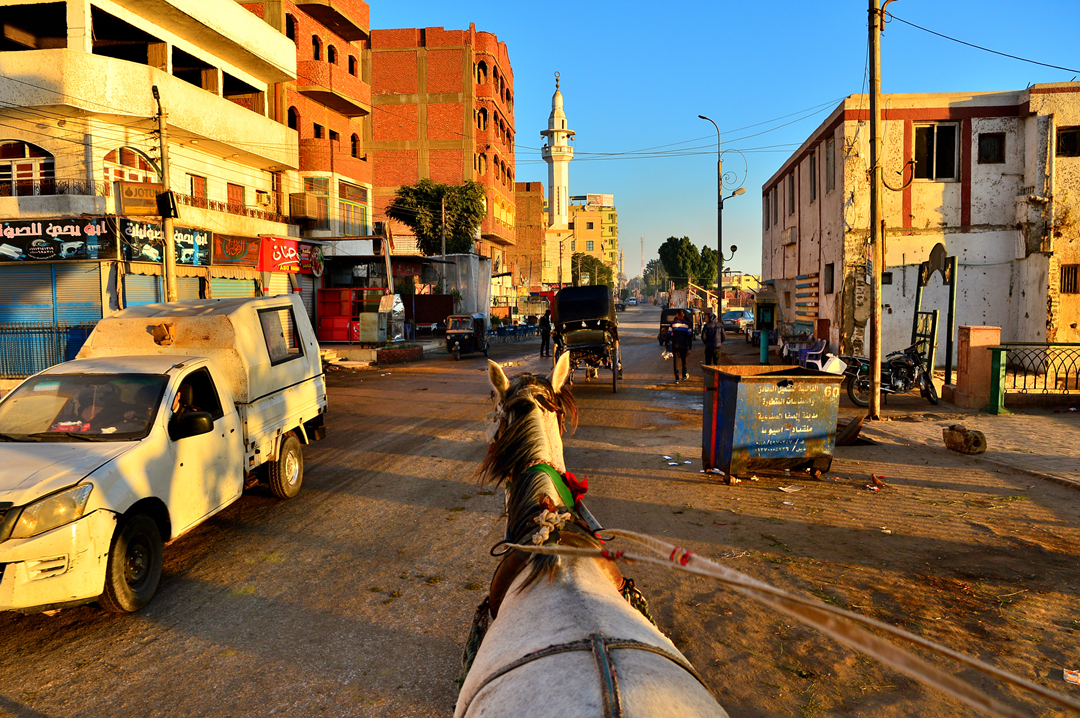크루즈선을 나서서 마차를 타고 호루스 대신전 Great Temple of Horus으로 가는 길이다.