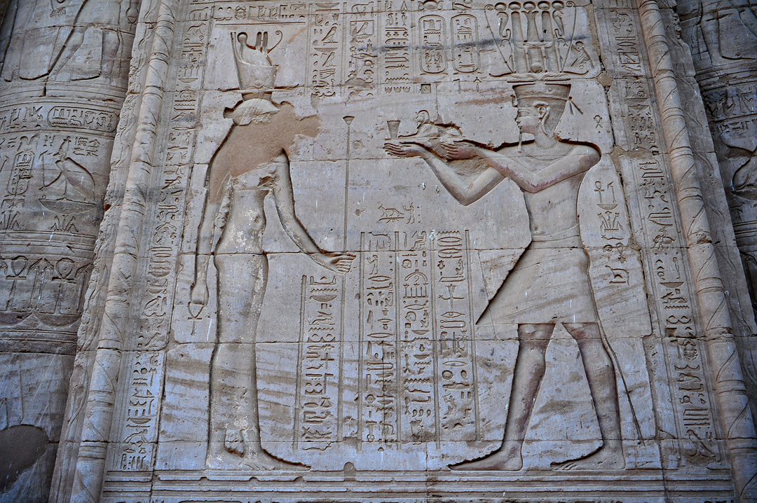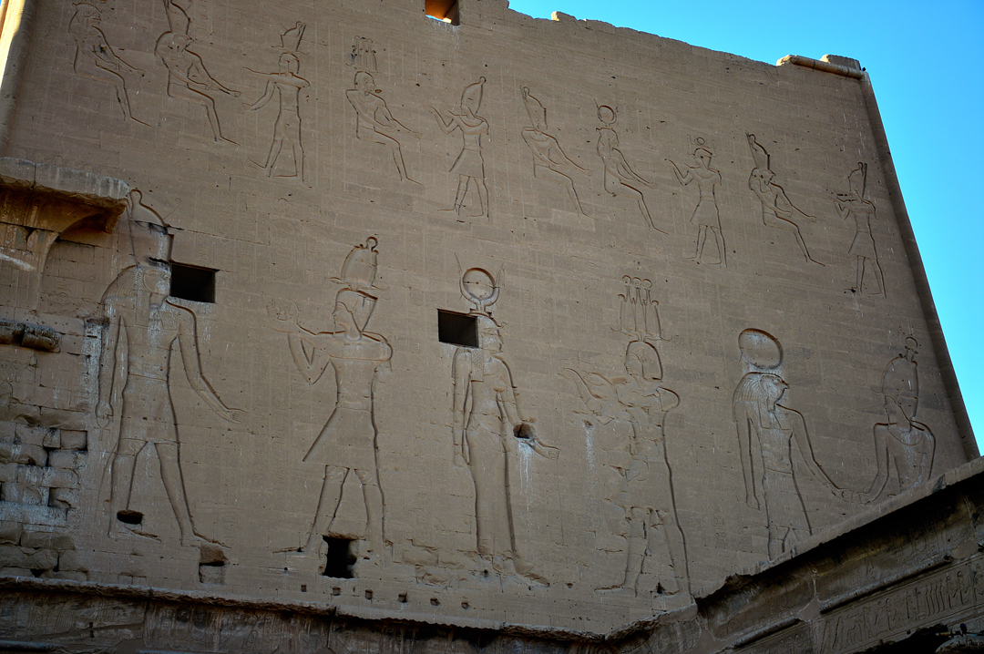 이곳에도 벽면 가득 각종 신들의 돋새김이 새겨져 있는데, 그중에서 파라오의 업적을 표현하는