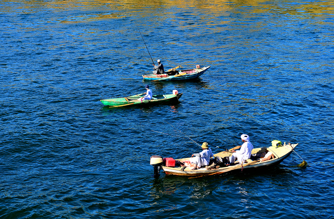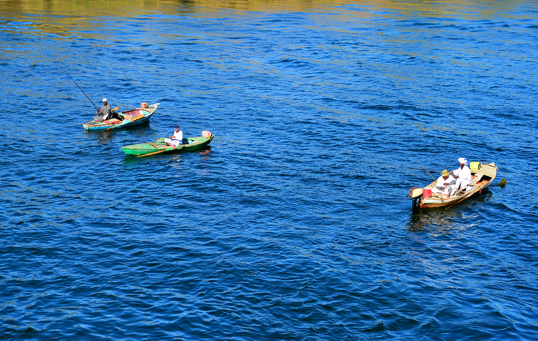 나일 강에서 낚시를 하는 현지인들 모습이다.