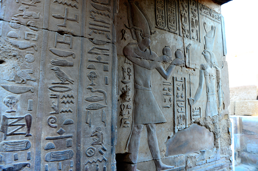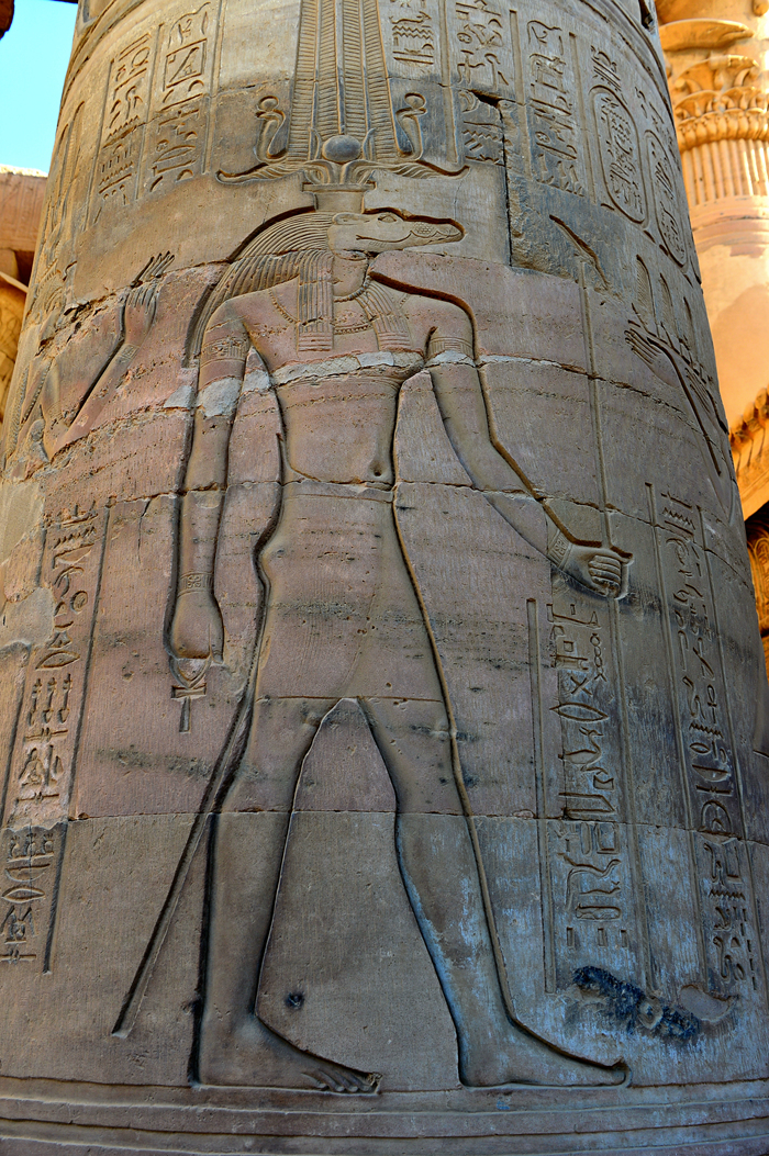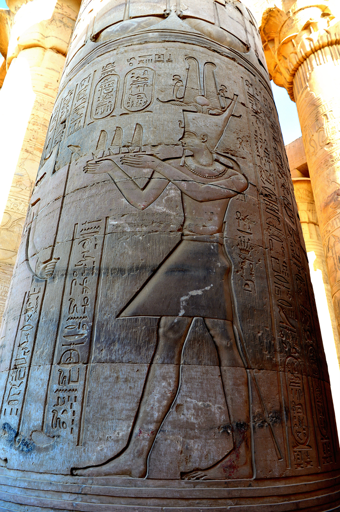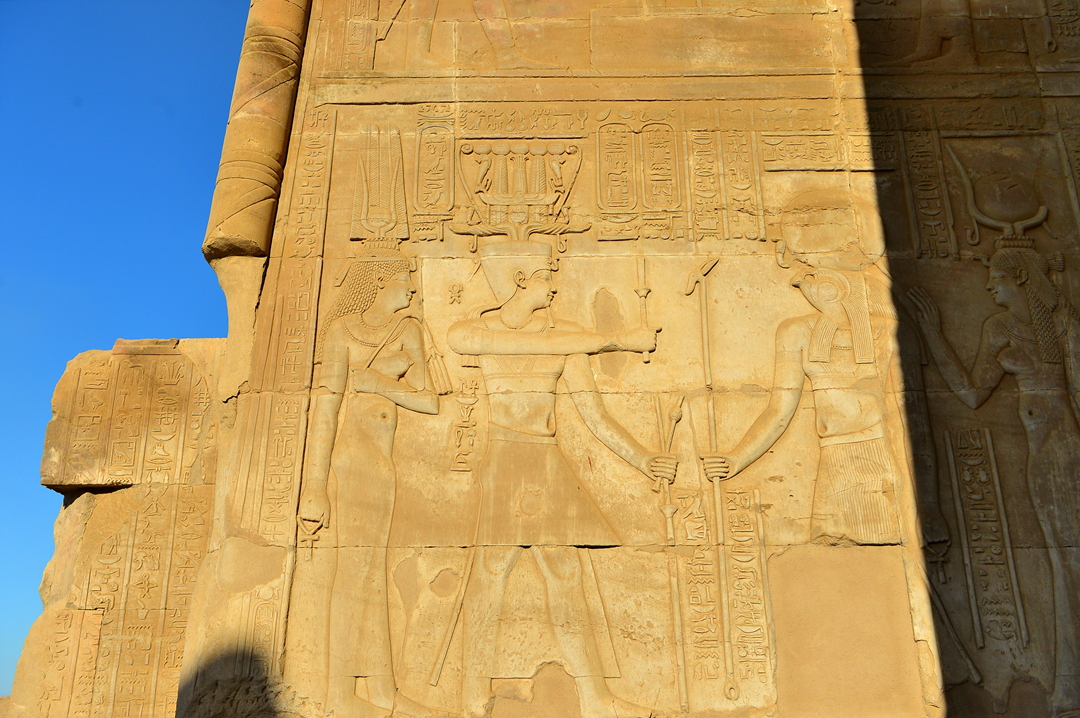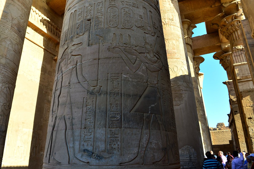 기둥에 새겨져 있는 파라오와 소베크 신 모습을 자세히 담아봤다.