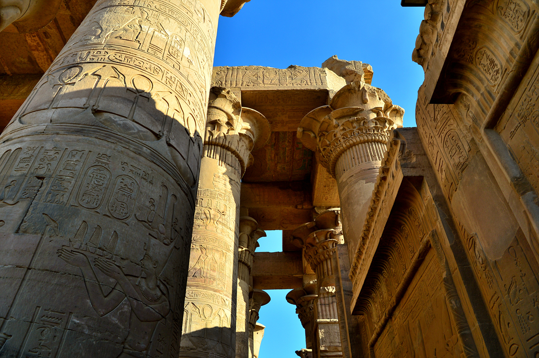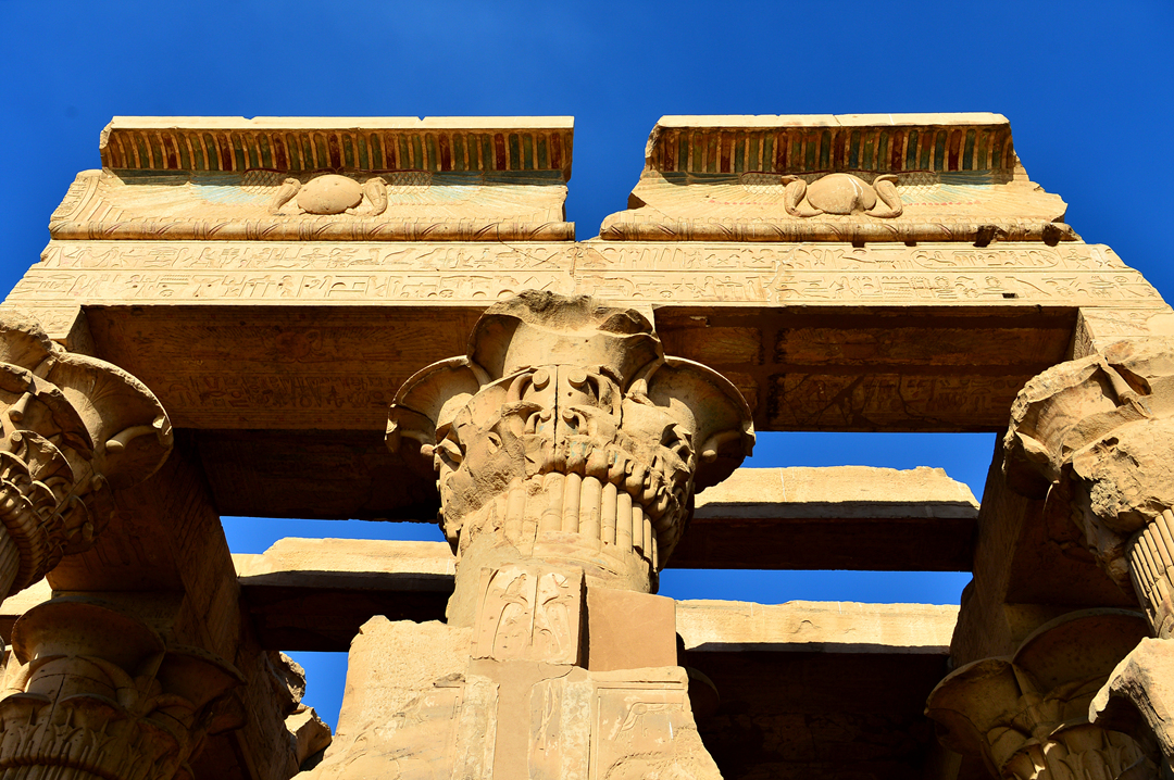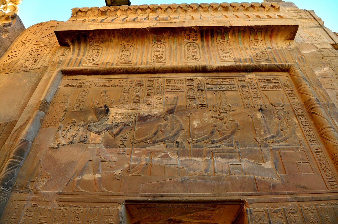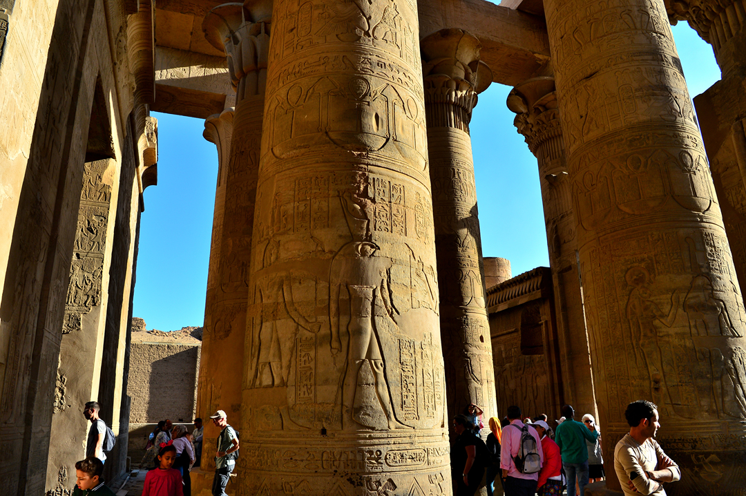 기둥에 새겨져 있는 파라오와 소베크 신 모습을 자세히 담아봤다.