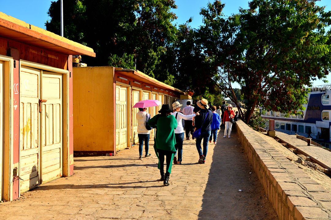 크루즈선에서 내려 강변의 길을 따라 콤 옴보 신전으로 향하는 중이다.