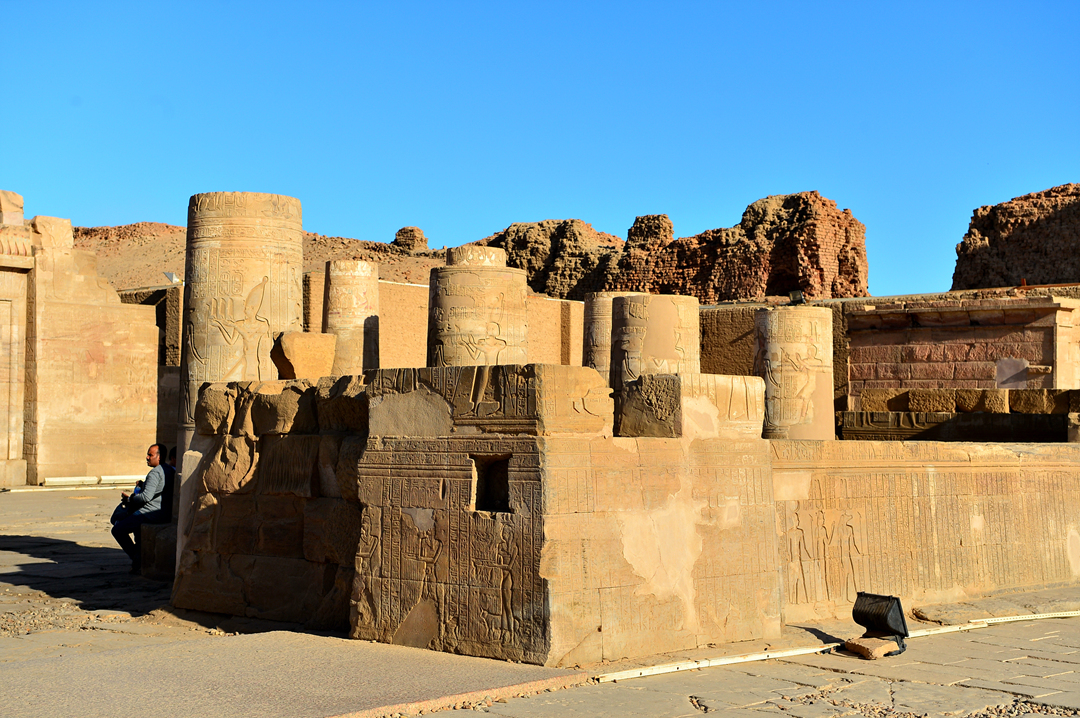 콤 옴보 신전은 크게 파손되어 보존 상태가 좋지 않은 신전인데, 언덕 위 돌기둥은 아마도