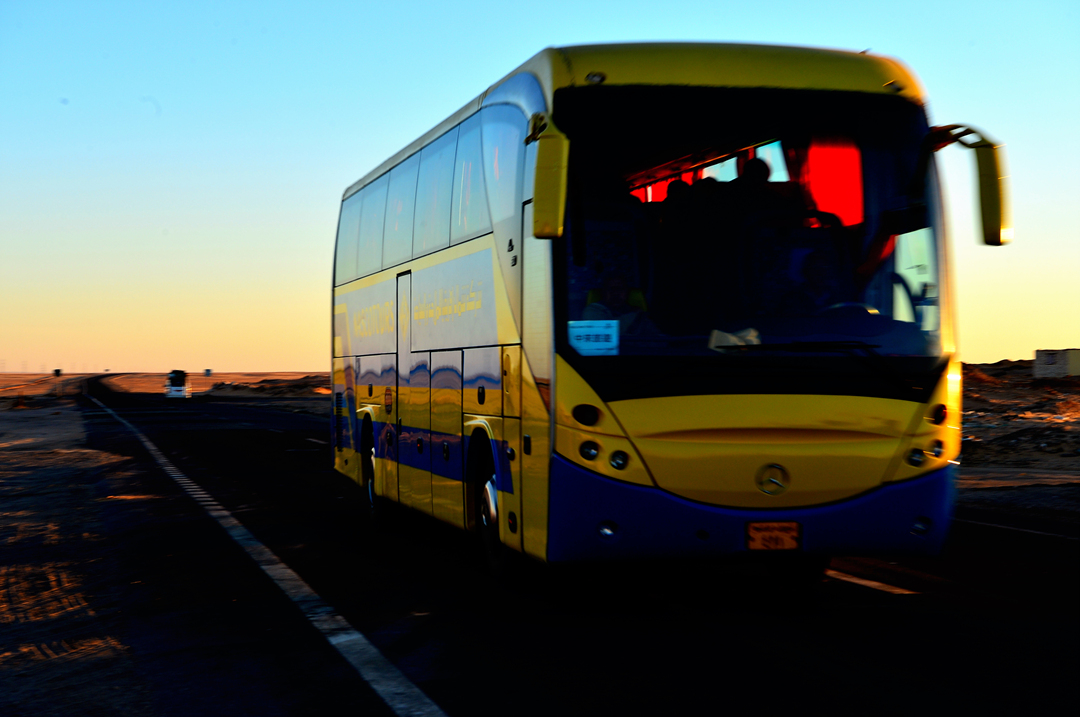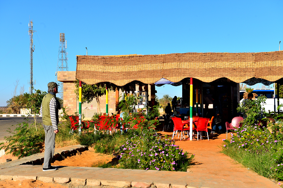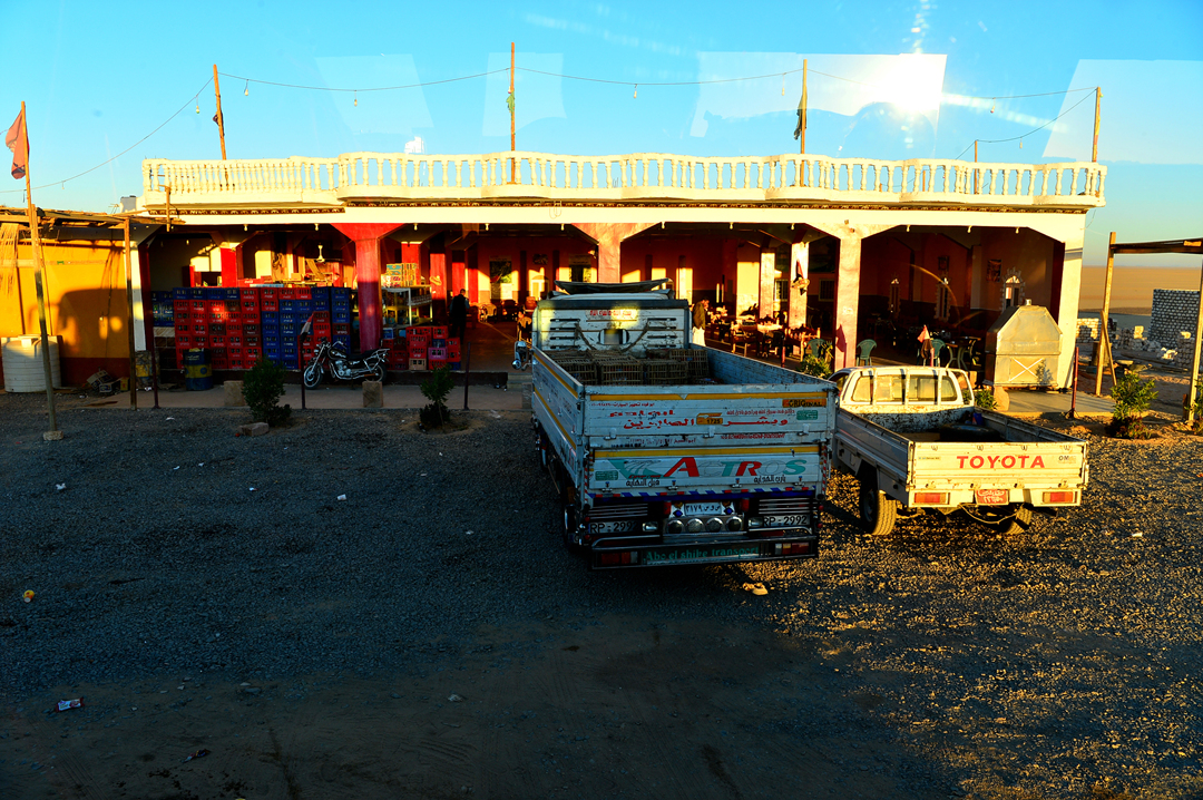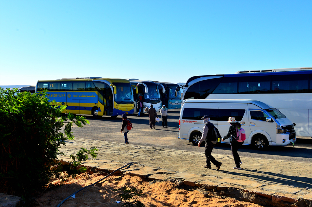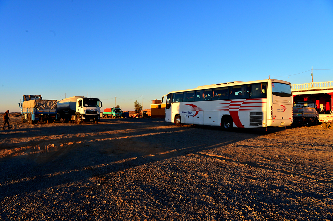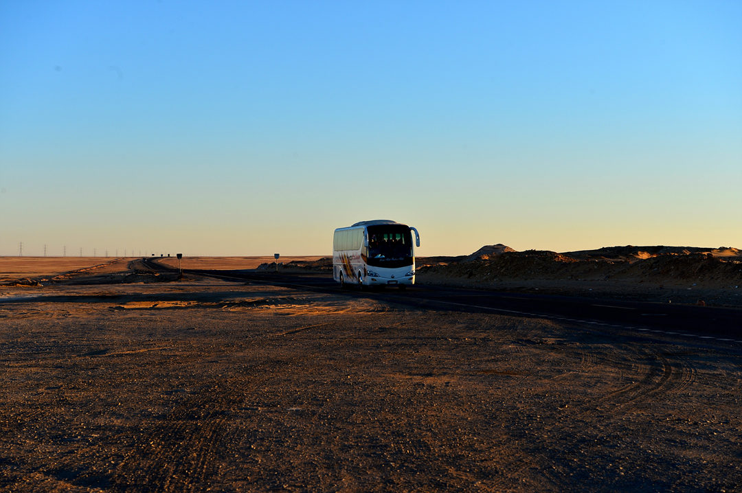 휴게소 앞 일직선으로 곧게 뻗어 있는 아스팔트 도로 위를 아부 심벨을 오가는 버스들이 쉴 새 없이