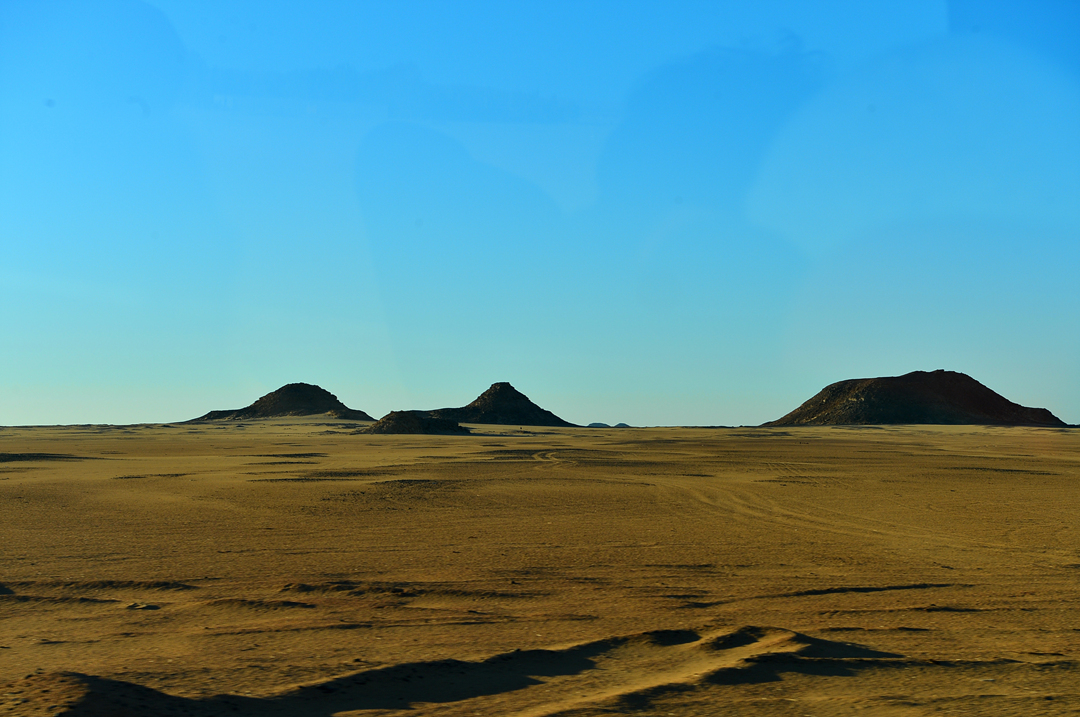 다시 출발한 차창으로 보이는 이집트 사막 풍경이다.