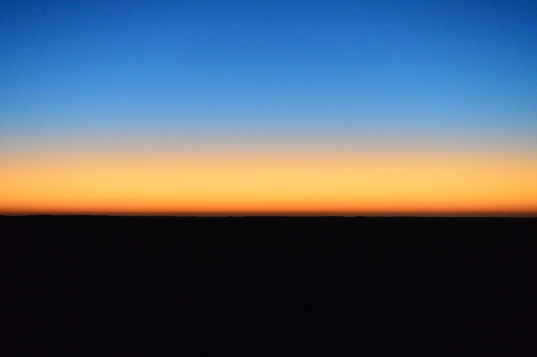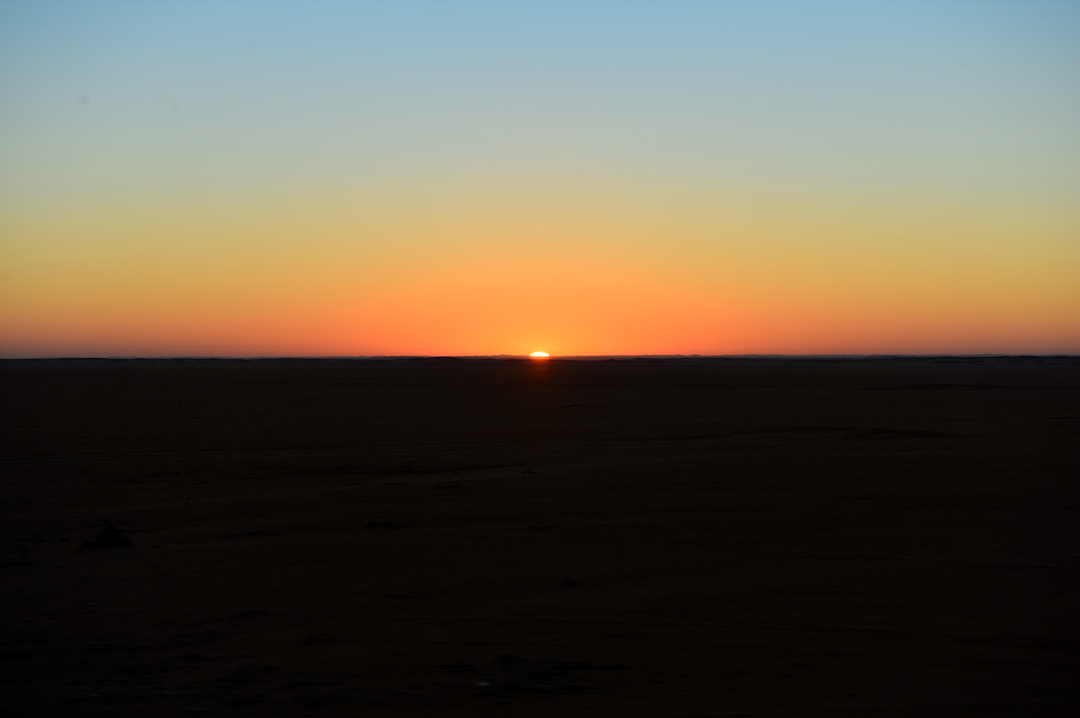 1시간쯤 지난 후 사막의 동쪽 지평선에서 아침 해가 서서히 고개를 내민다.