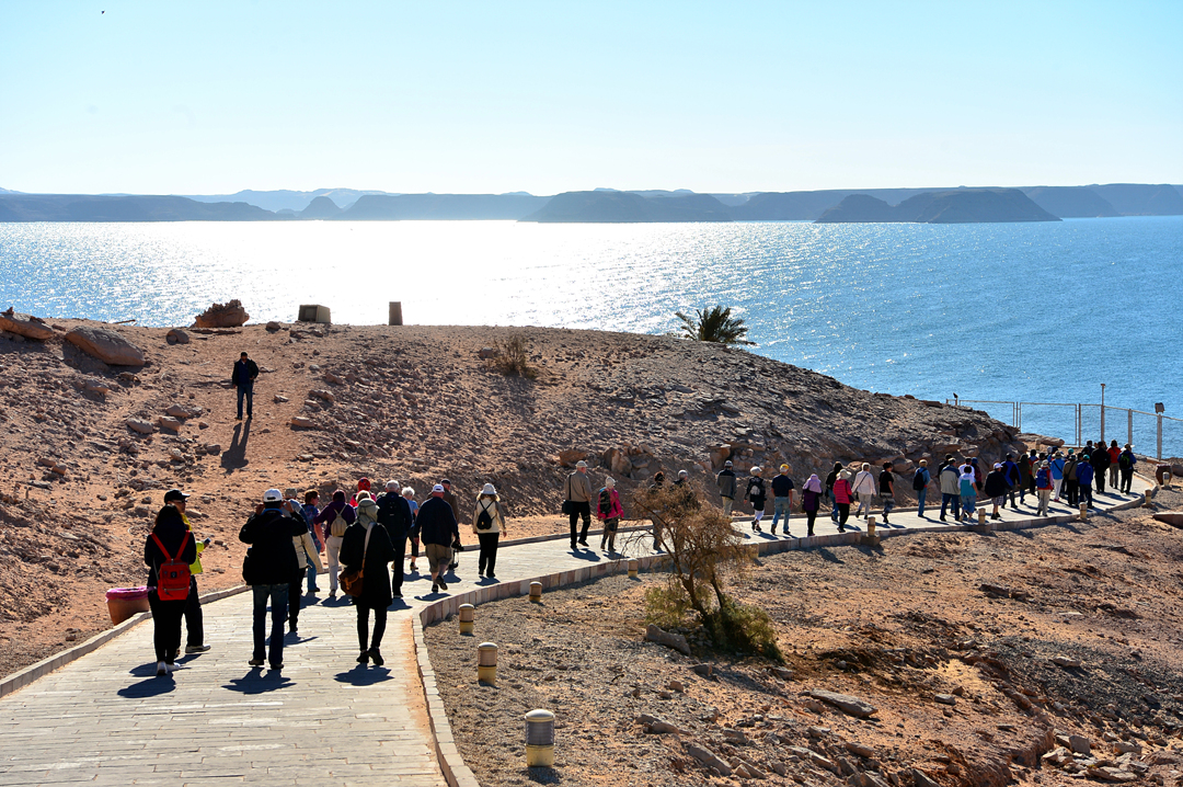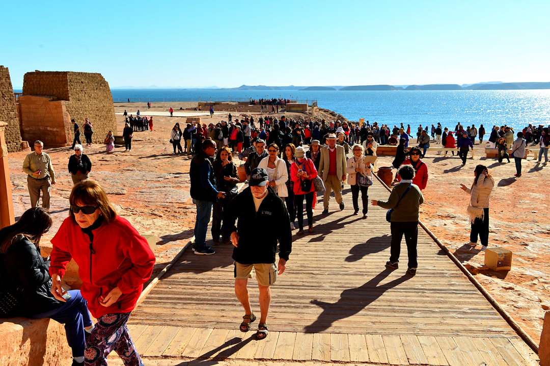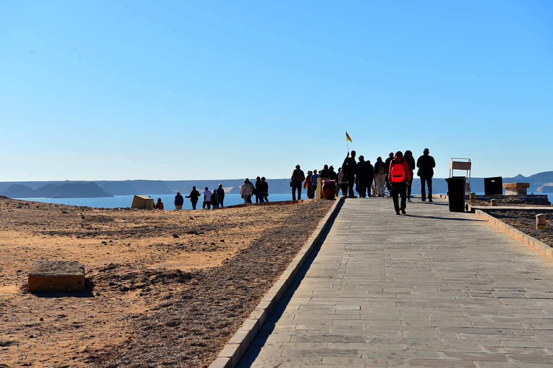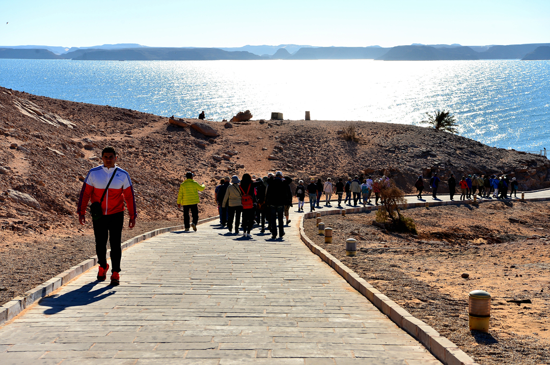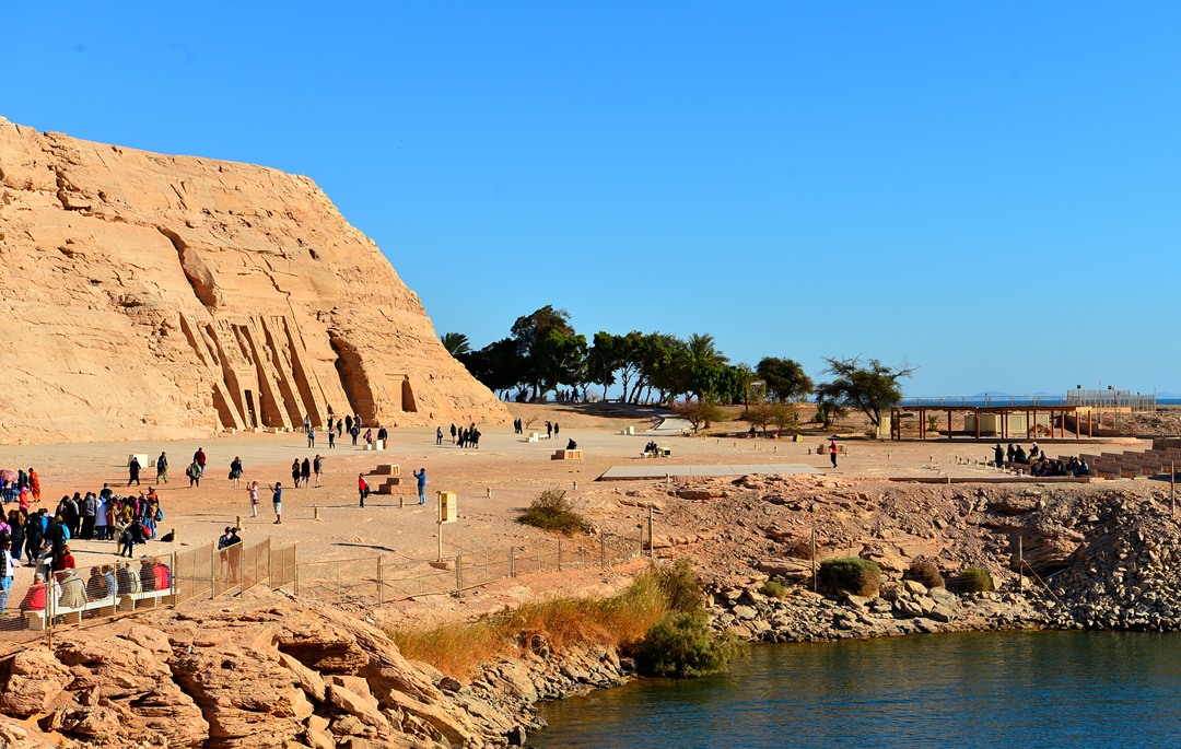 아부 심벨 대신전 입구에서 바라본 나세르 호와 수많은 관광객들 모습이다.