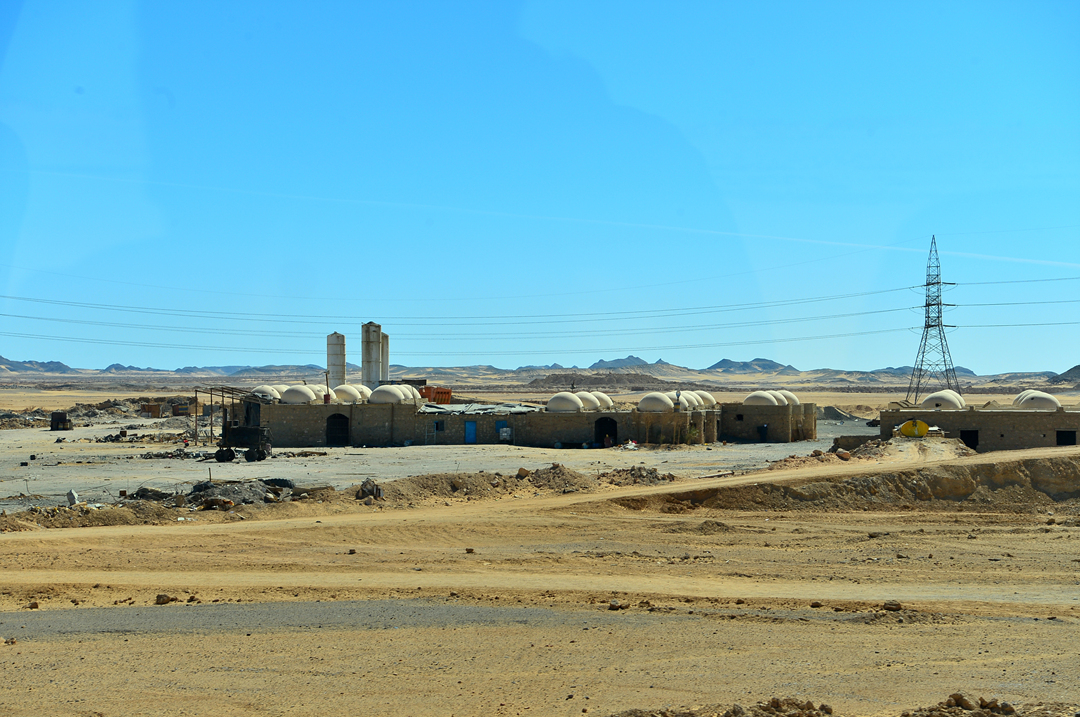 사막의 중간에 새로운 길을 내고 있는 모습도 보이고 그 사이에서 건물도 간간히 나타난다.