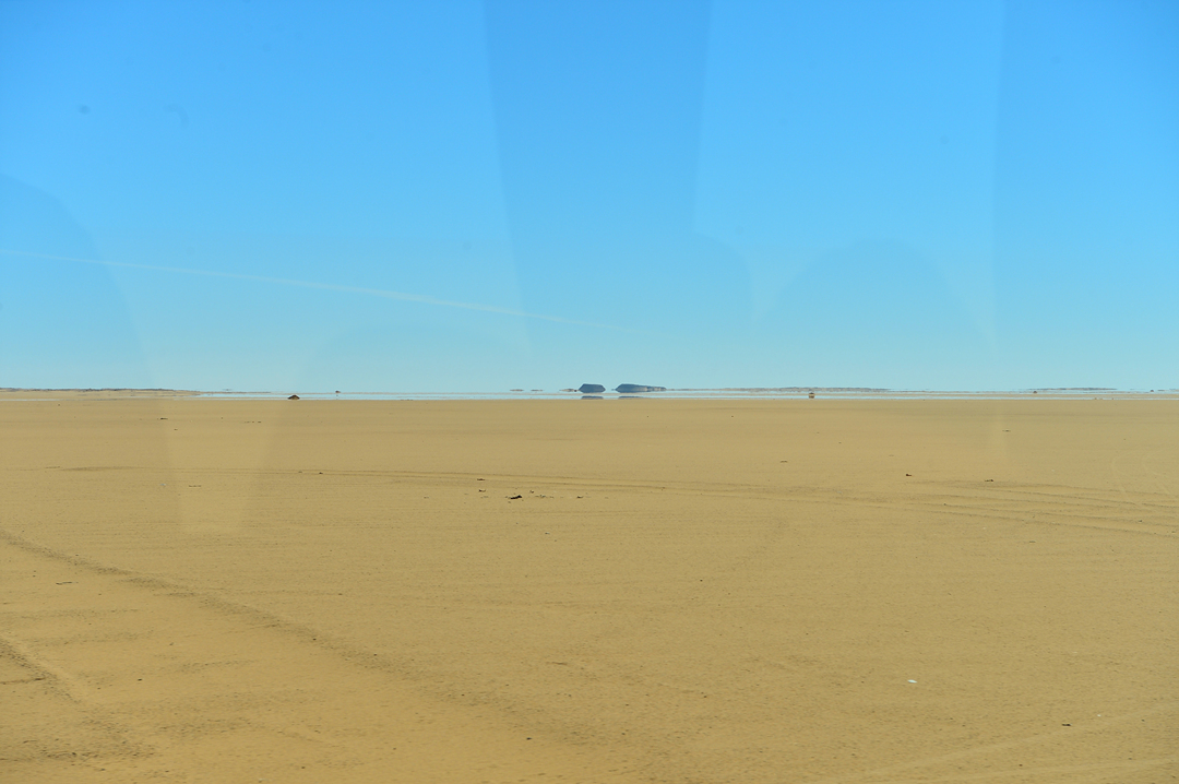 멀리는 작은 봉우리와 호수 같이 보이는 신기루가 펼쳐져 있다.