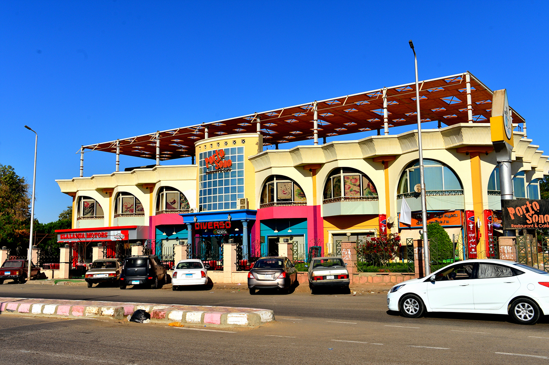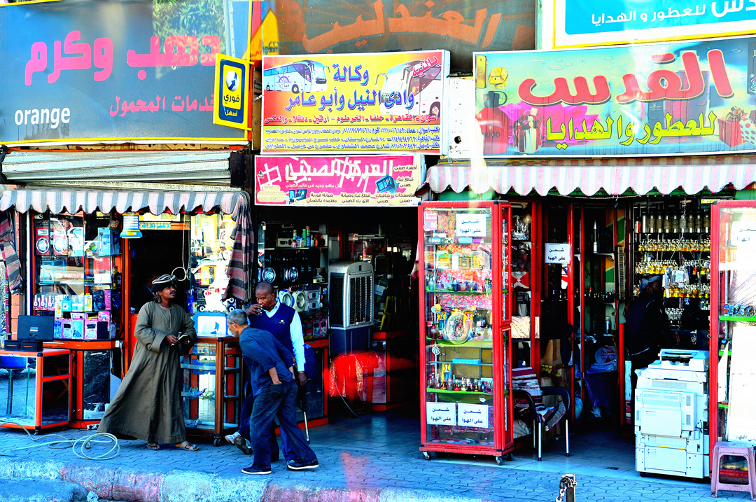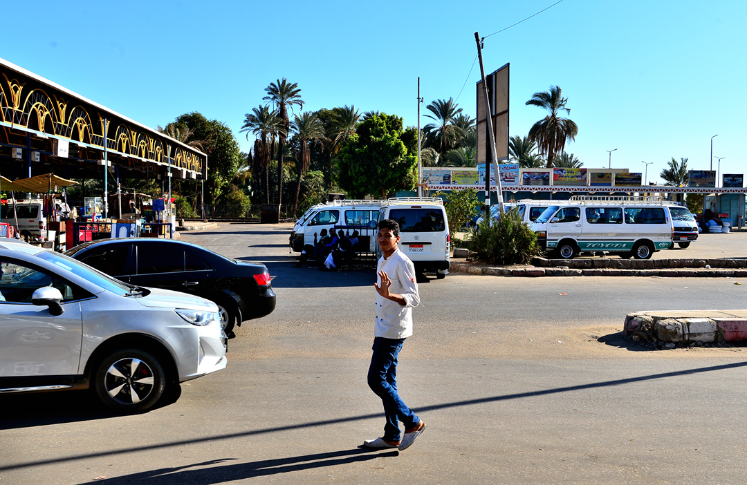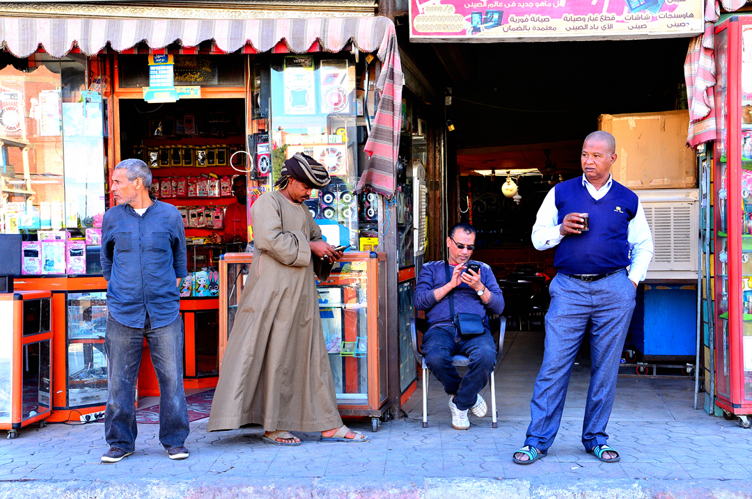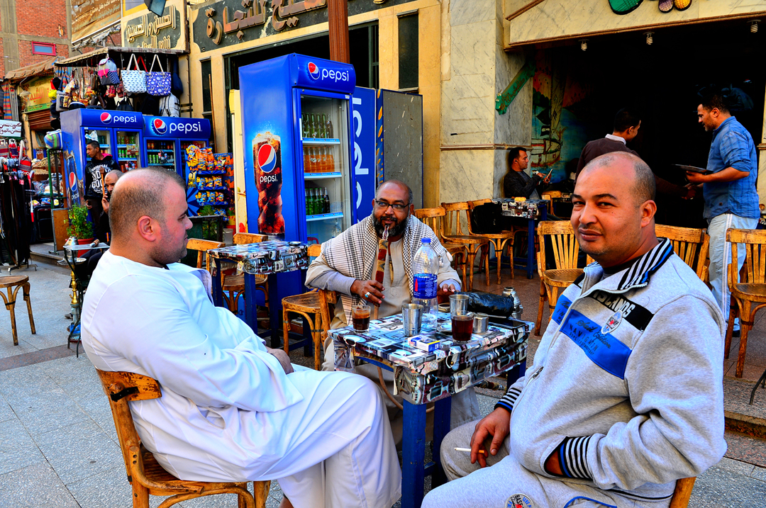 도로변의 카페에서 음료를 즐기는 아스완의 어른들~