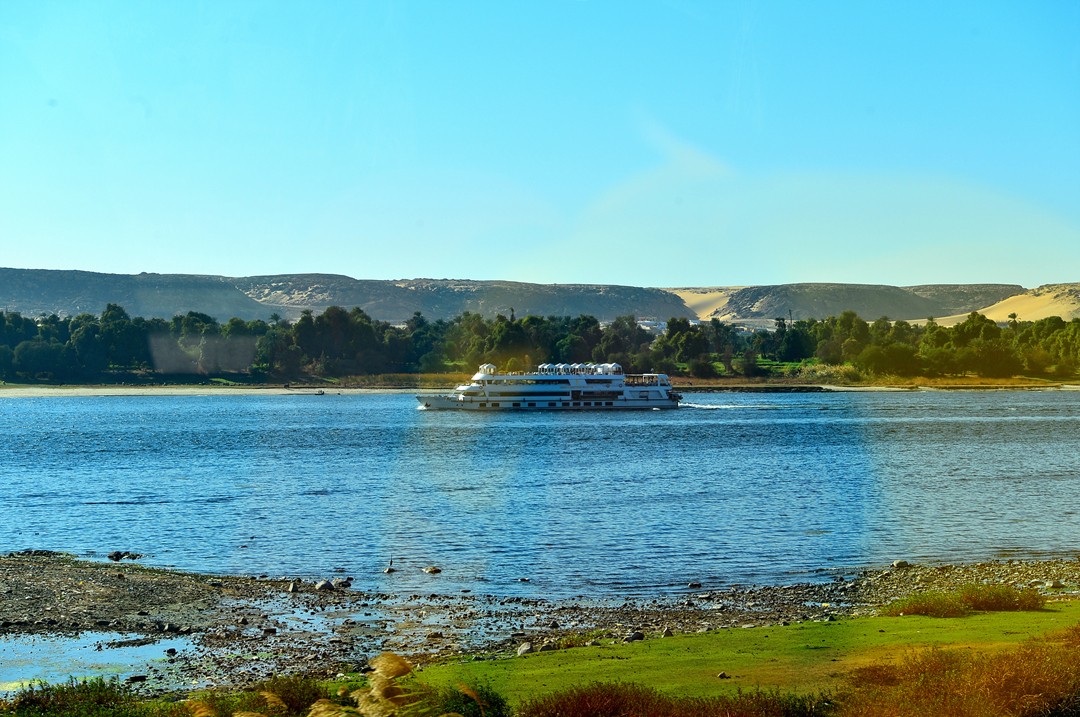 식사를 마치고 길을 나선 차창 밖으로 나일 강의 시원스러운 모습과 함께 크루즈선도 보인다.