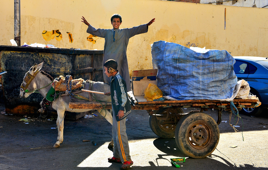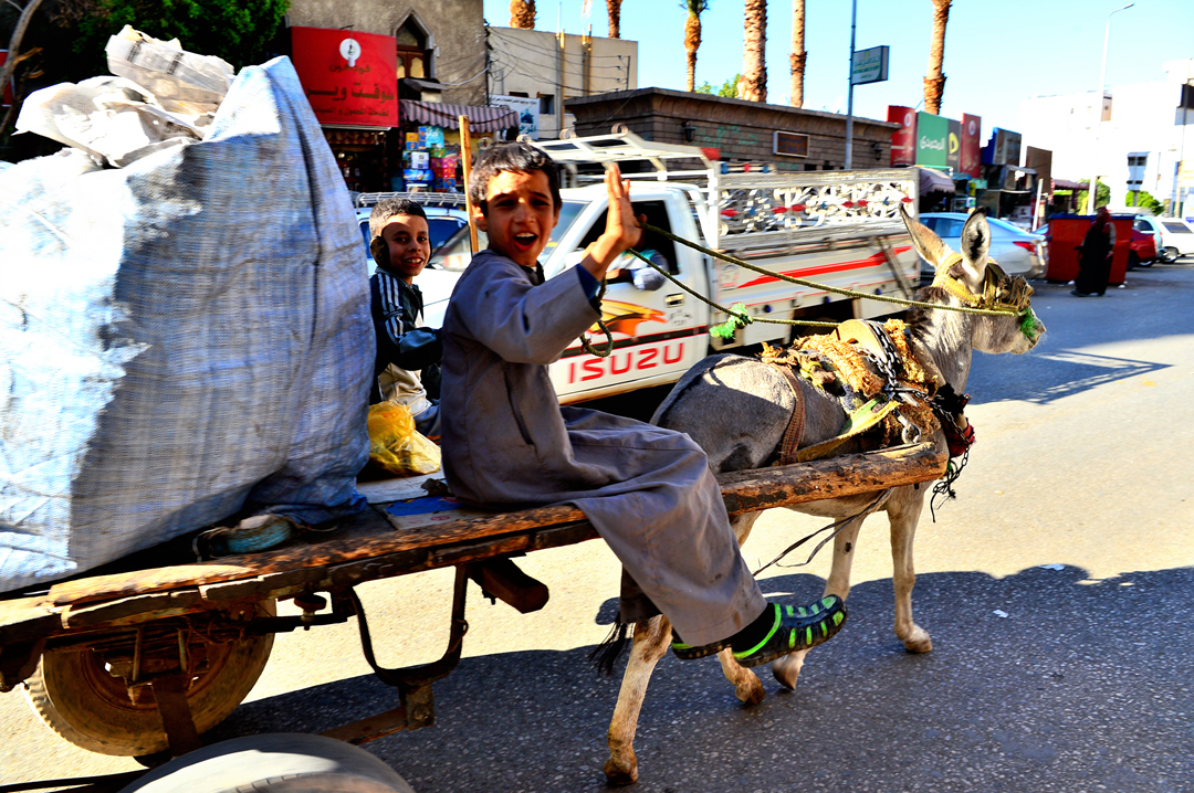 나귀가 끄는 마차의 어린 마부께서 반갑게 인사를 건네 온다.