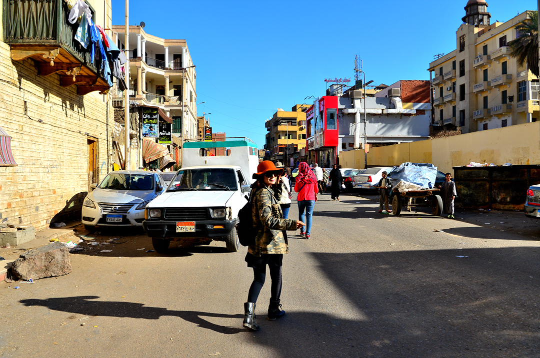 아부 심벨에서 280km의 사막 길을 달려 아스완으로 들어서는 모습인데
