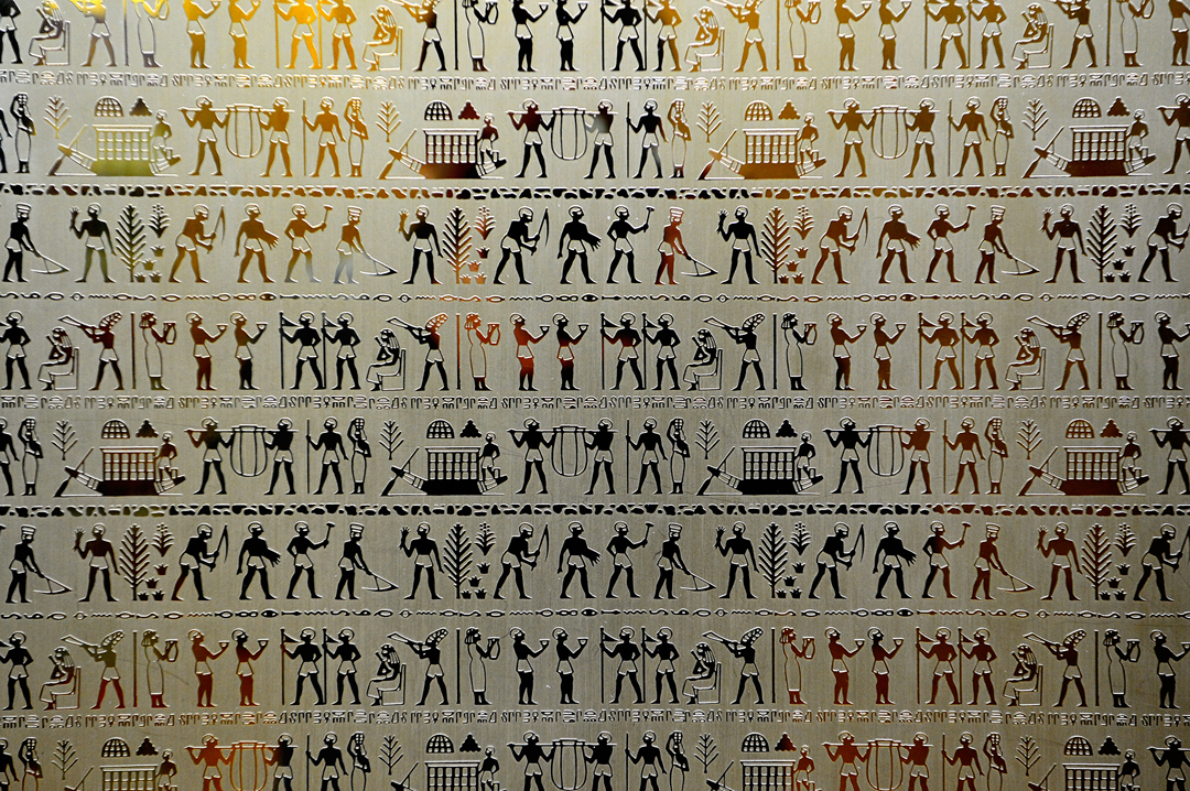 엘리베이터 내벽에 새겨진 고대 이집트인들의 생활상이다.