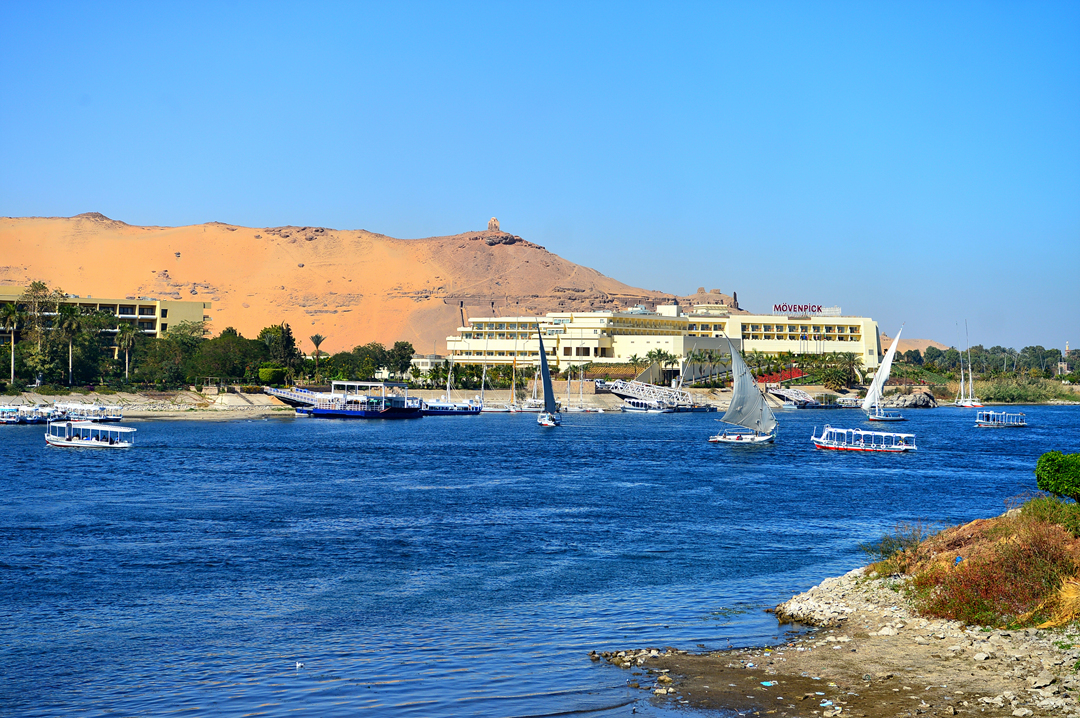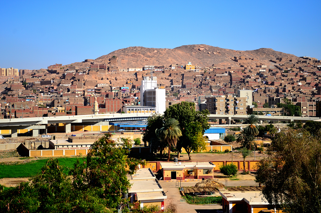 강변의 도로에서 바라본 아스완 시가지 모습이다.