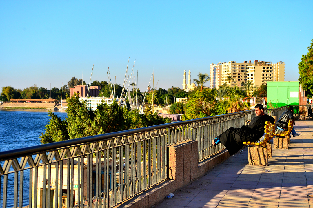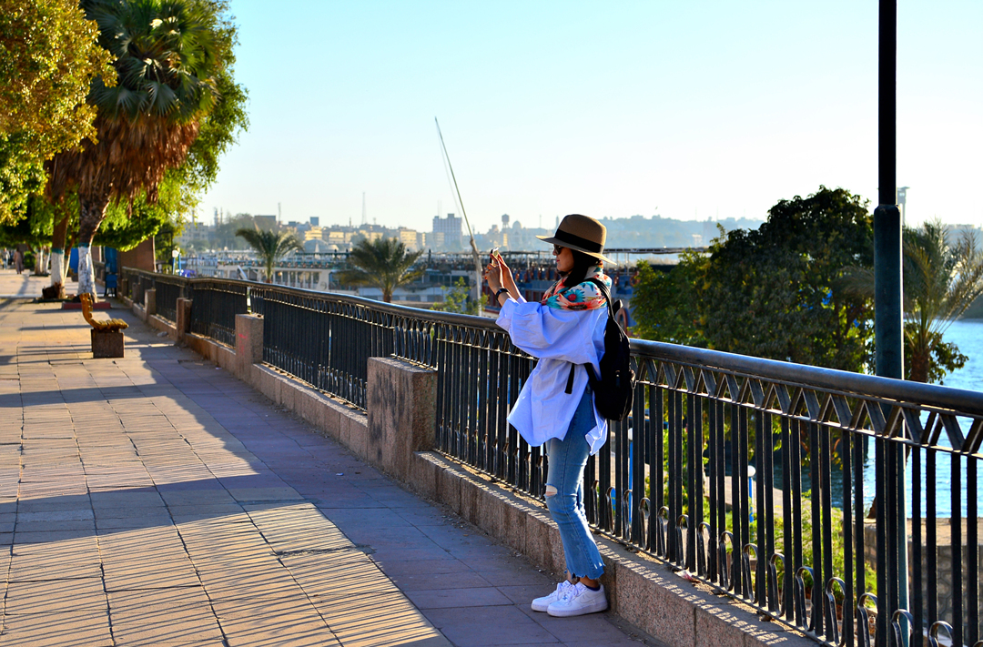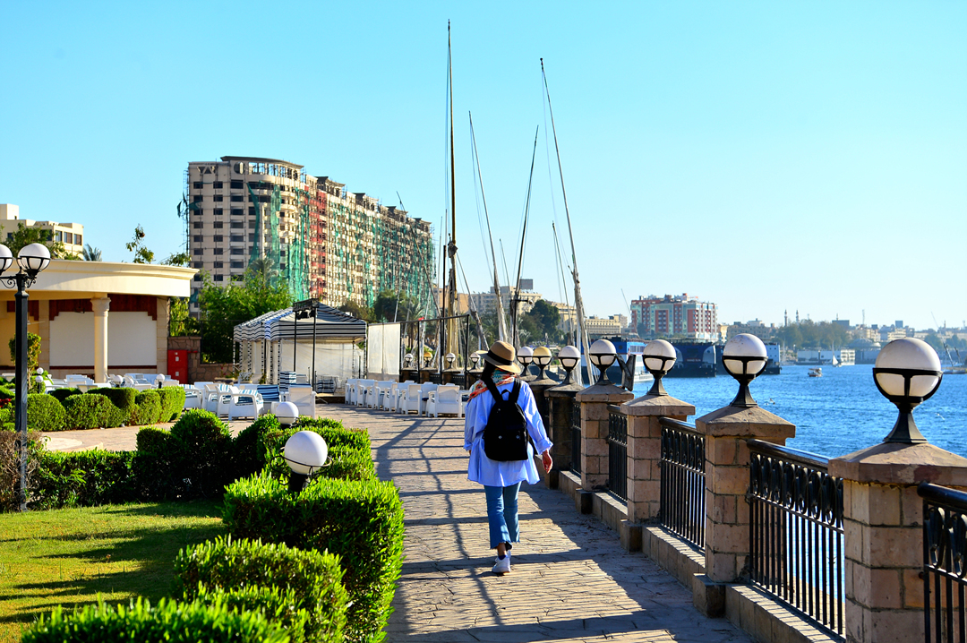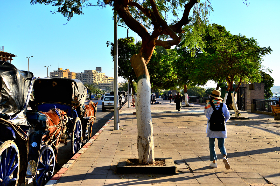 나일 강의 아름다운 풍광과 도로의 다채로운 모습을 즐기며 산책을 이어간다.