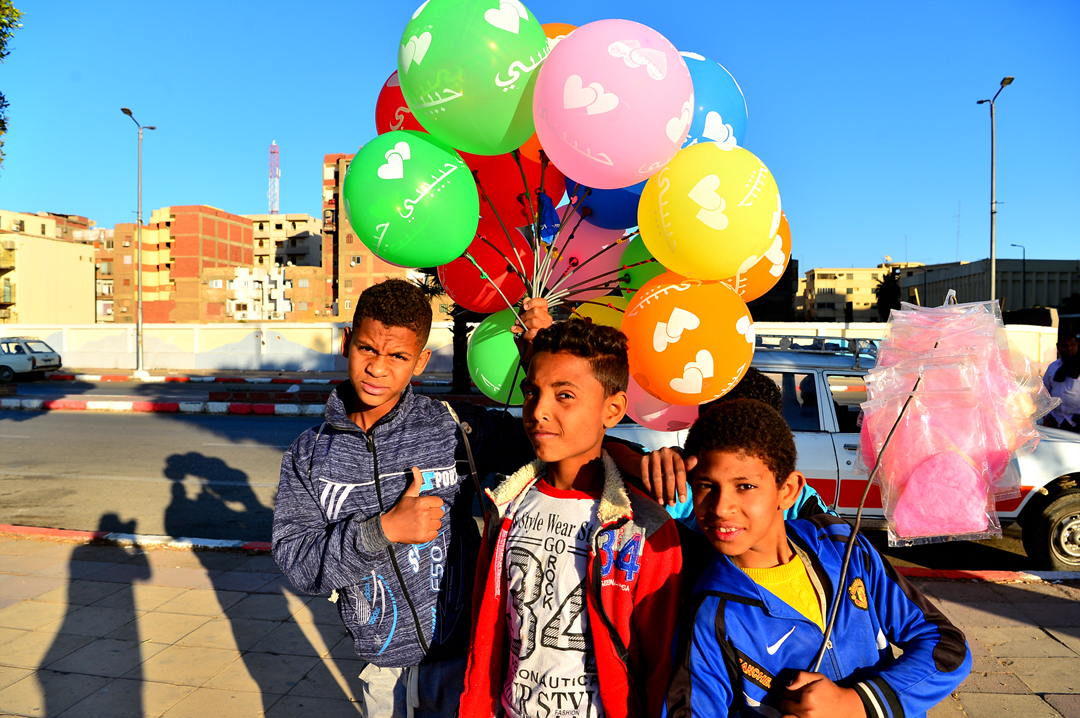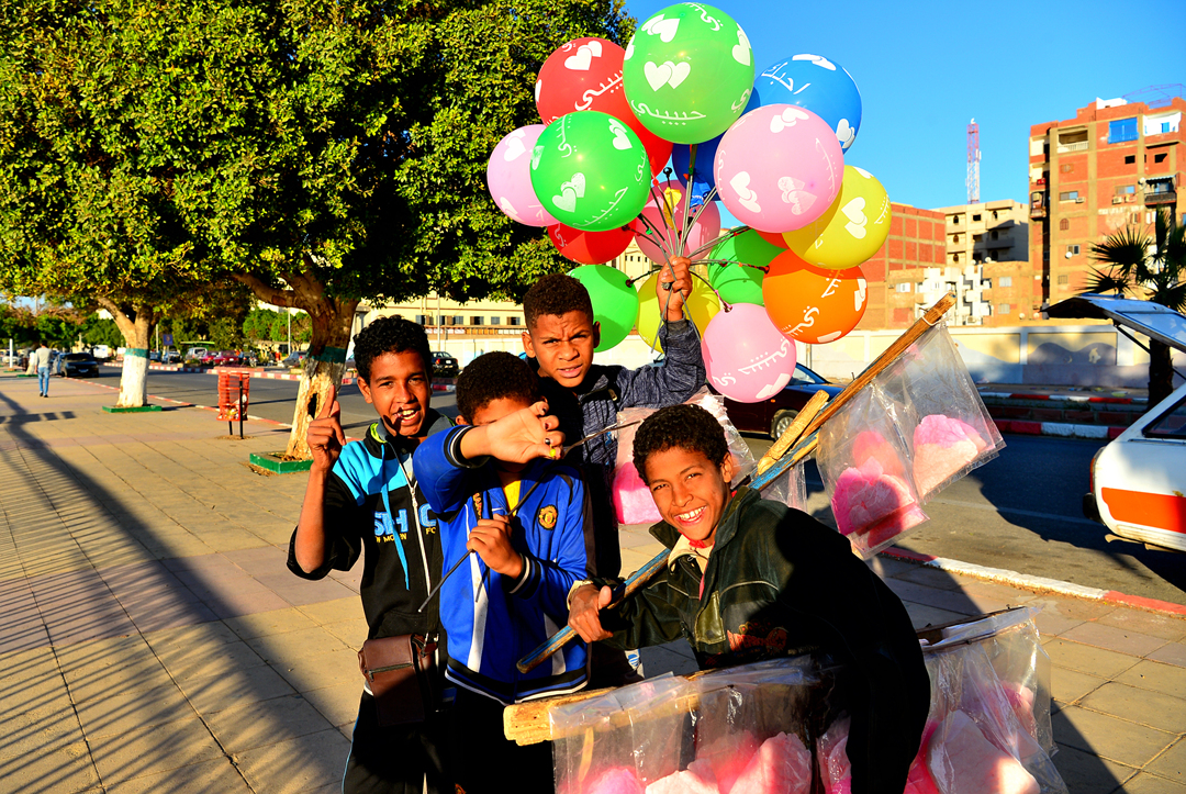 산책길에서 만난 풍선을 가득 든 현지 아이들이다.