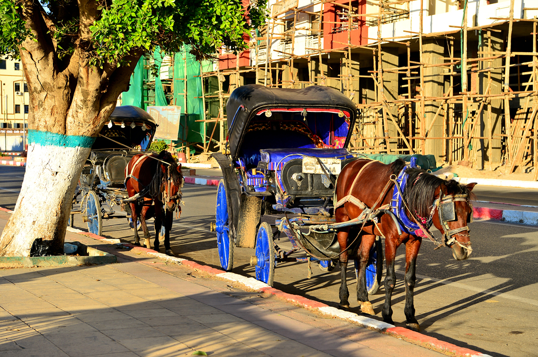 도로변에서 손님 맞을 채비를 하고 있는 마차들이다.