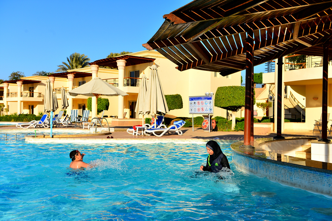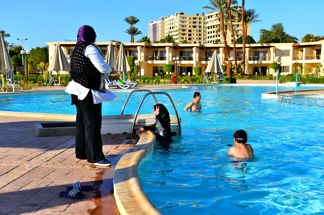 우리 부부 외에 유일하게 풀장을 찾은 이슬람 가족이다.