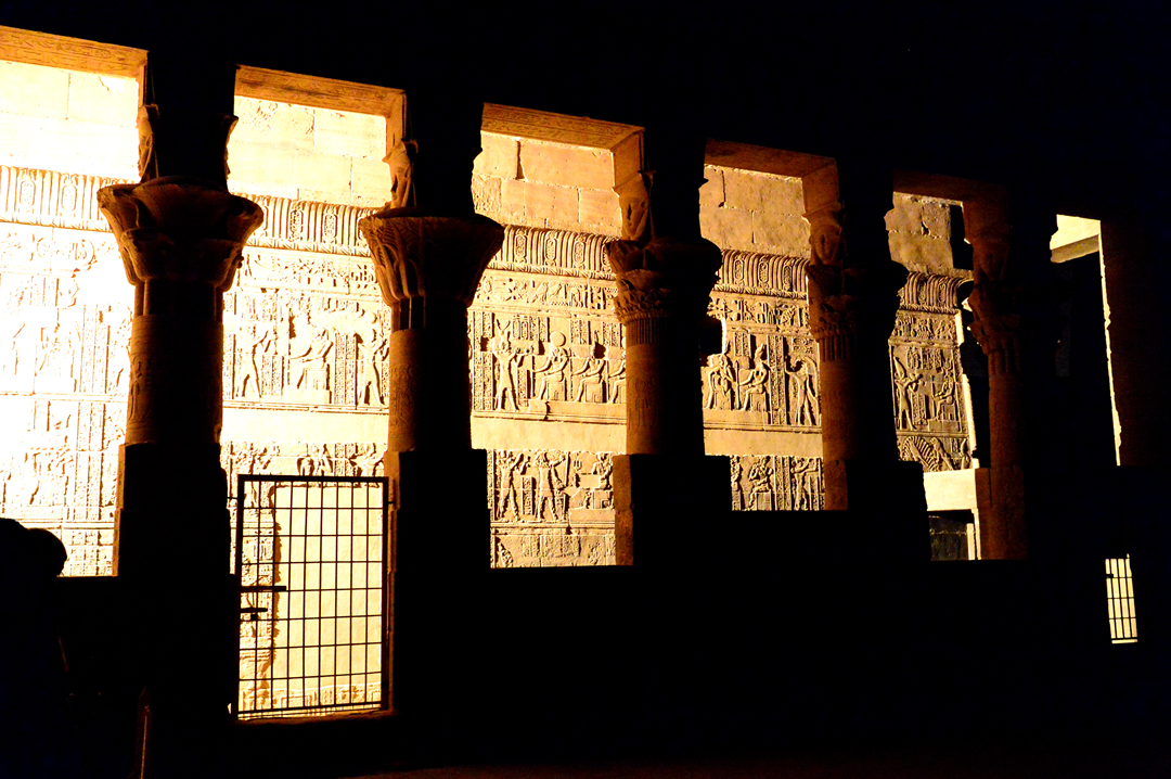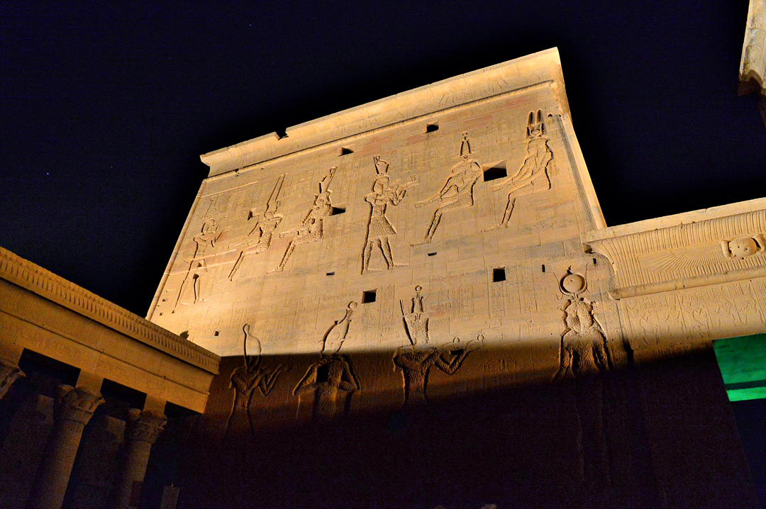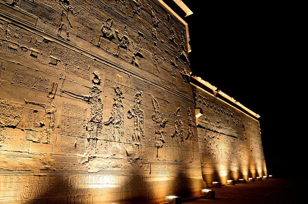 이시스 신전은 보존 상태가 매우 좋으며 벽의 돋새김과 그림문자가 매우 뚜렷하게 남아 있다.