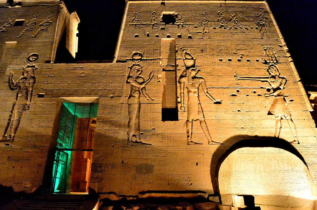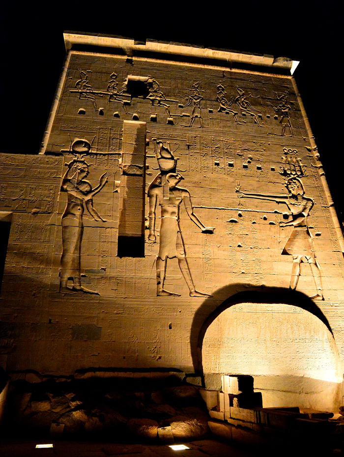 첫째 탑문에 새겨진 신들과 파라오의 돋새김이다.
