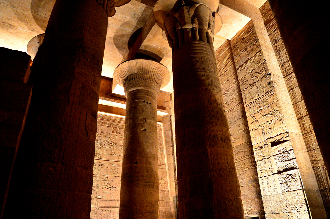 여신의 얼굴이 조각되어 있는 하트호르 기둥으로 매우 아름답게 장식되어 있다.
