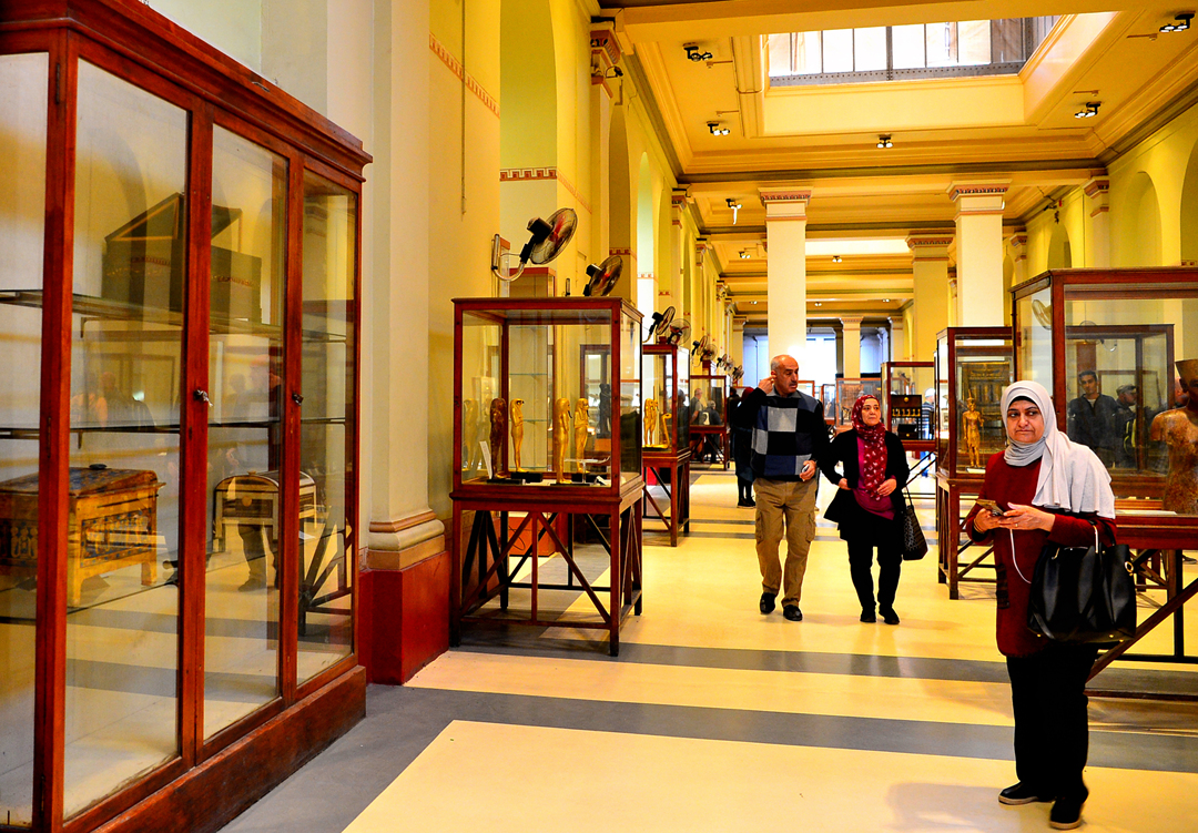 1층의 각 전시실에는 각종 조각상, 돋새김, 벽화, 공예품, 파라오의 미라에 이르기까지 많은 유물이 시대별로