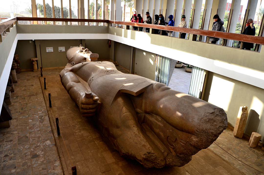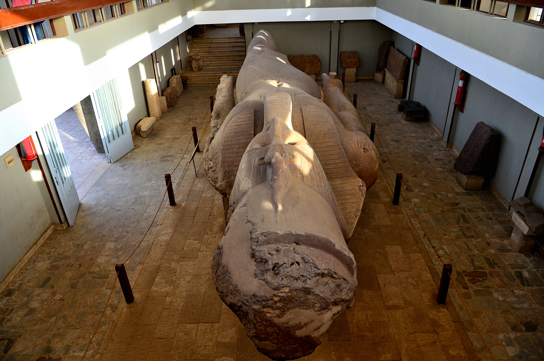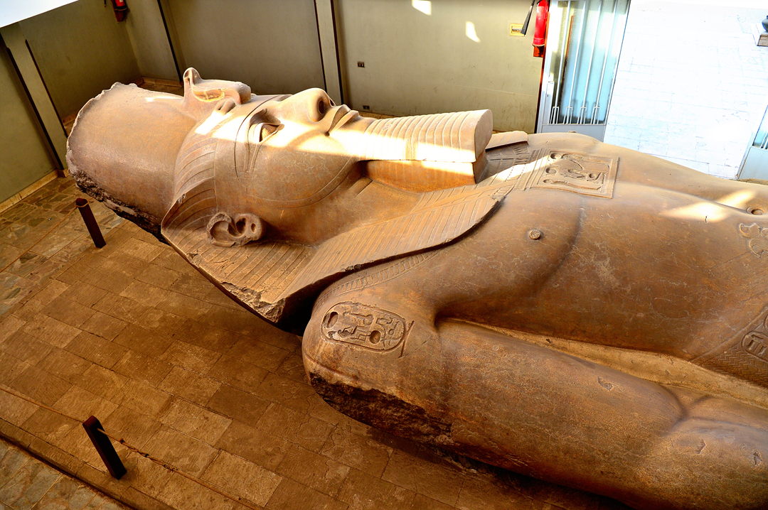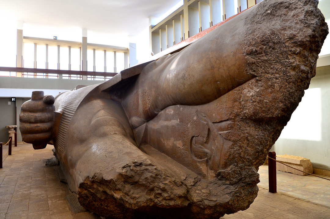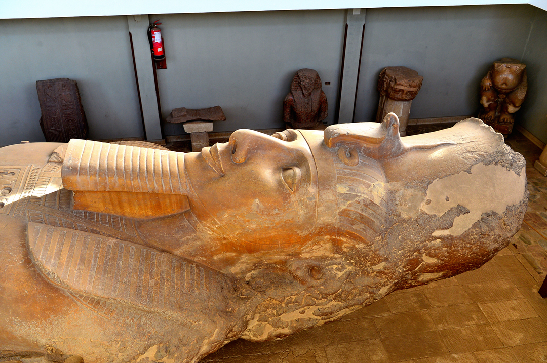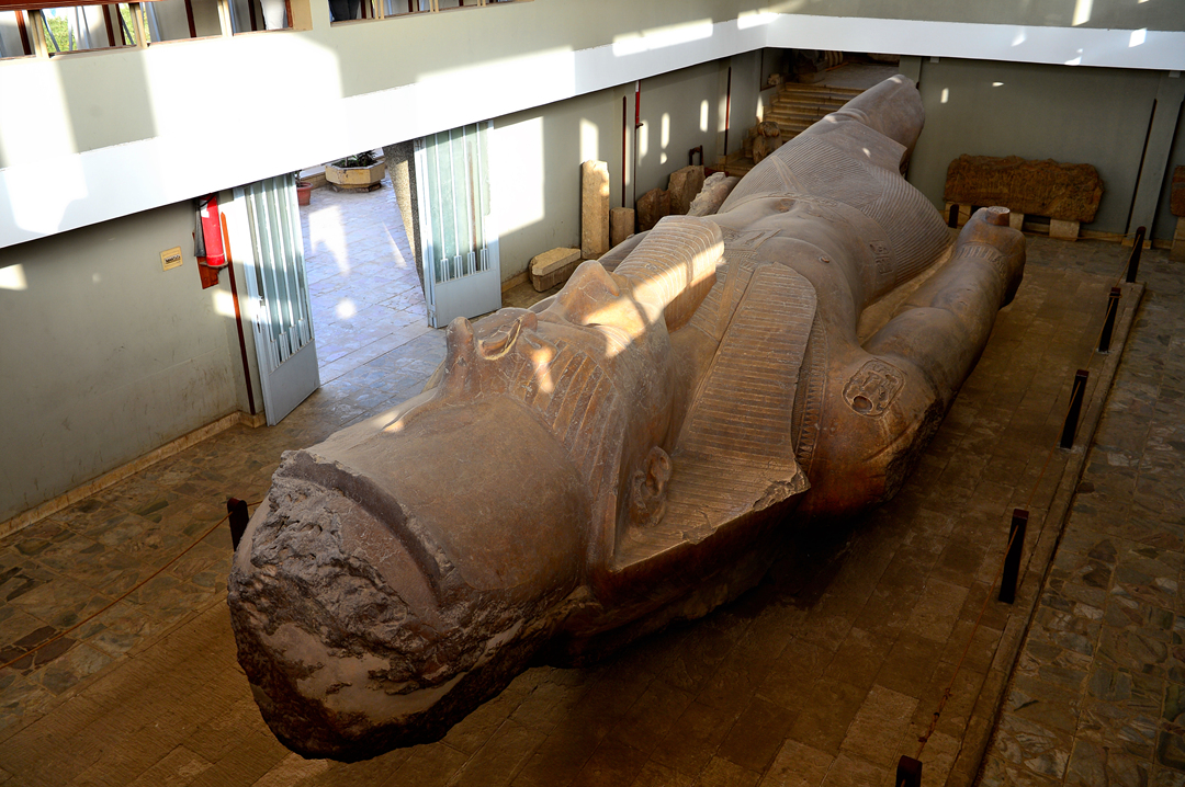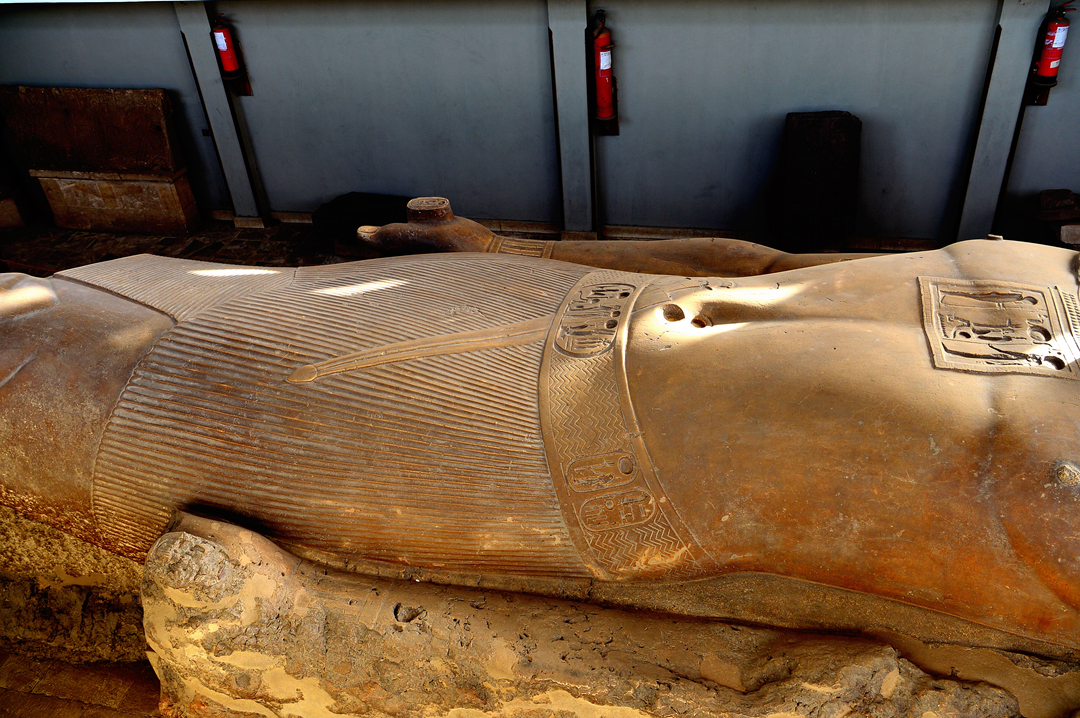 조각 박물관 안에 누워있는 이 람세스 2세의 거상은 왕관의 일부와 무릎 이하의 한쪽 다리와 한쪽 팔꿈치가