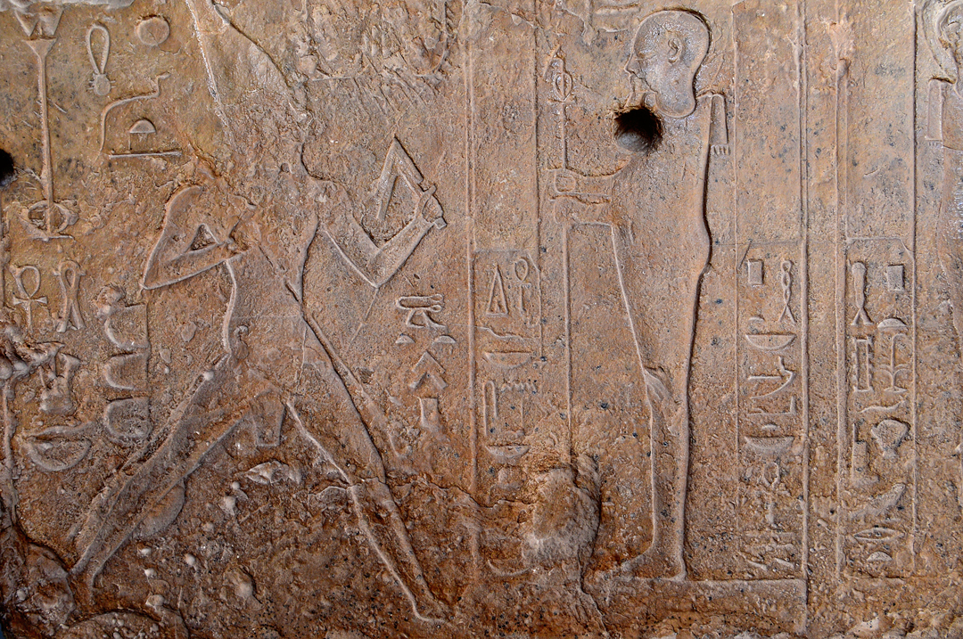 이 석상에서 매우 흥미로운 것은 석상의 어깨에 새겨져 있는 카르투시로, 놀랍게도 람세스 2세의 석상에 람세스