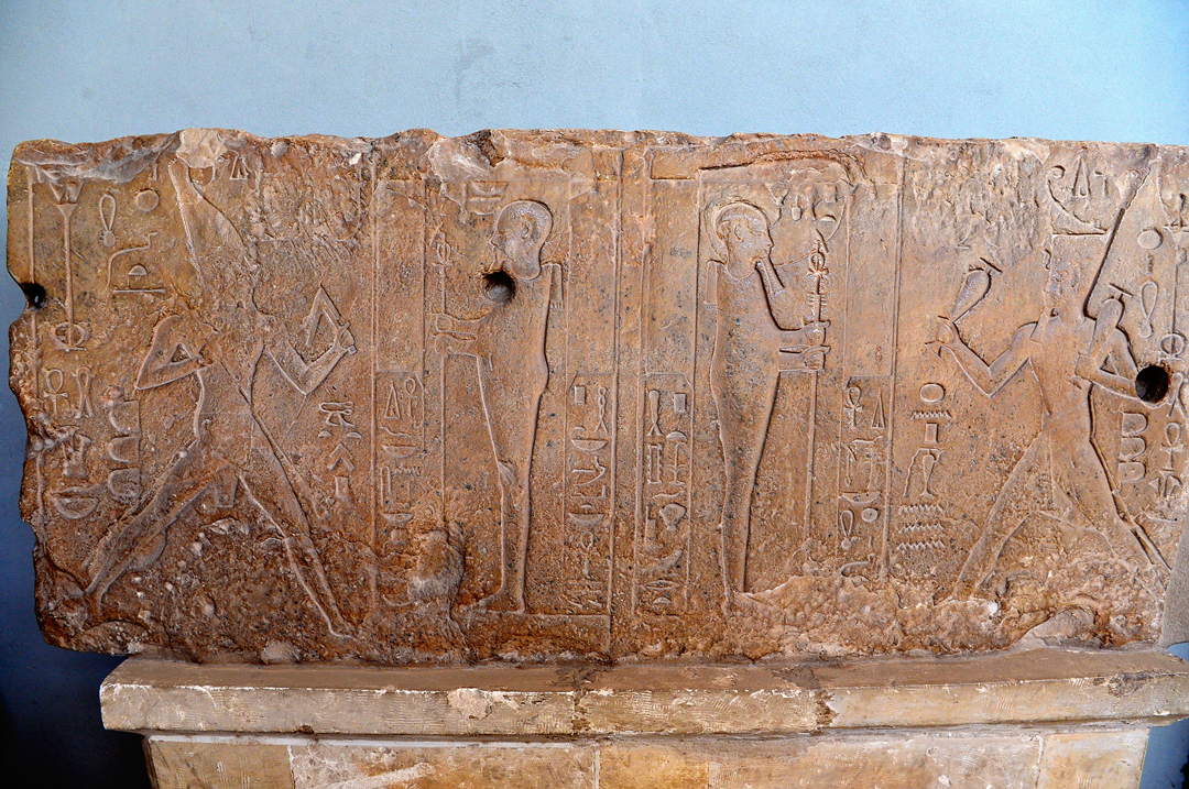 놓은 것으로 중앙에는 신 프타 Ptah, 왼쪽에는 그의 아내 세크메트 Sekhmet, 오른쪽은 멤피스의 세 신 중 하나인