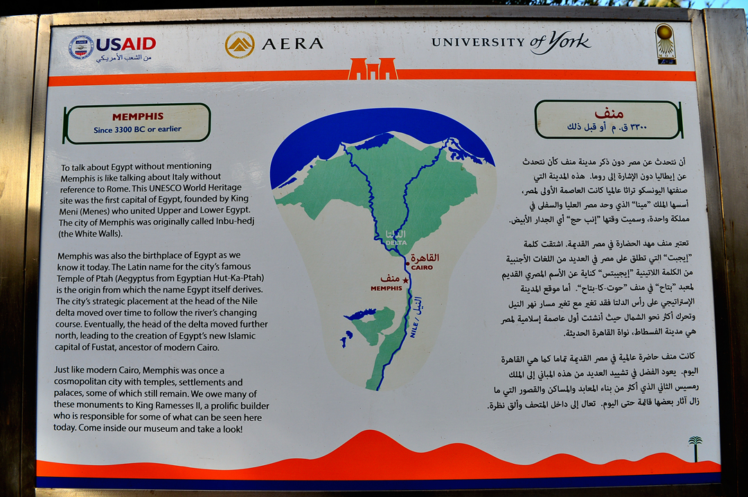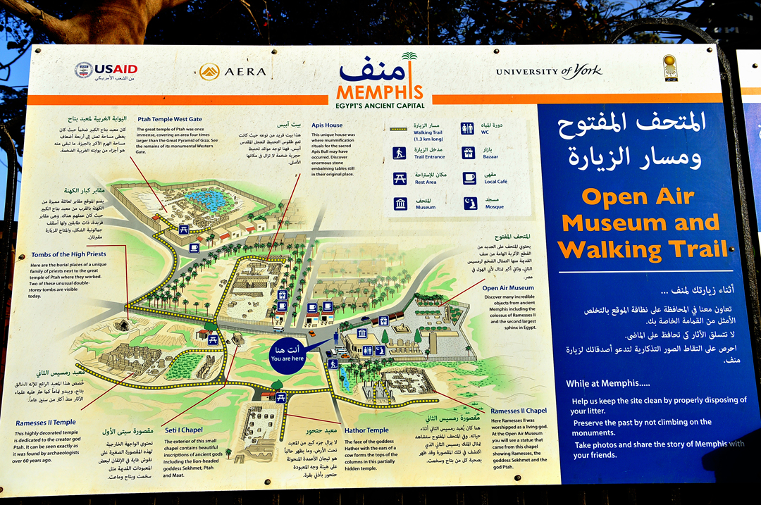 나일 강변에 위치한 옛 왕도 멤피스의 지리적 위치를 표시해 놓은 안내판이다.
