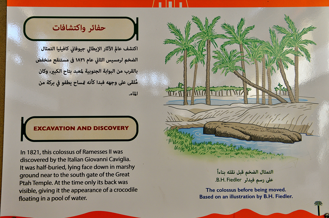 작은 박물관을 가득 채우고 있는 람세스 2세의 거상에 대한 안내판이다.