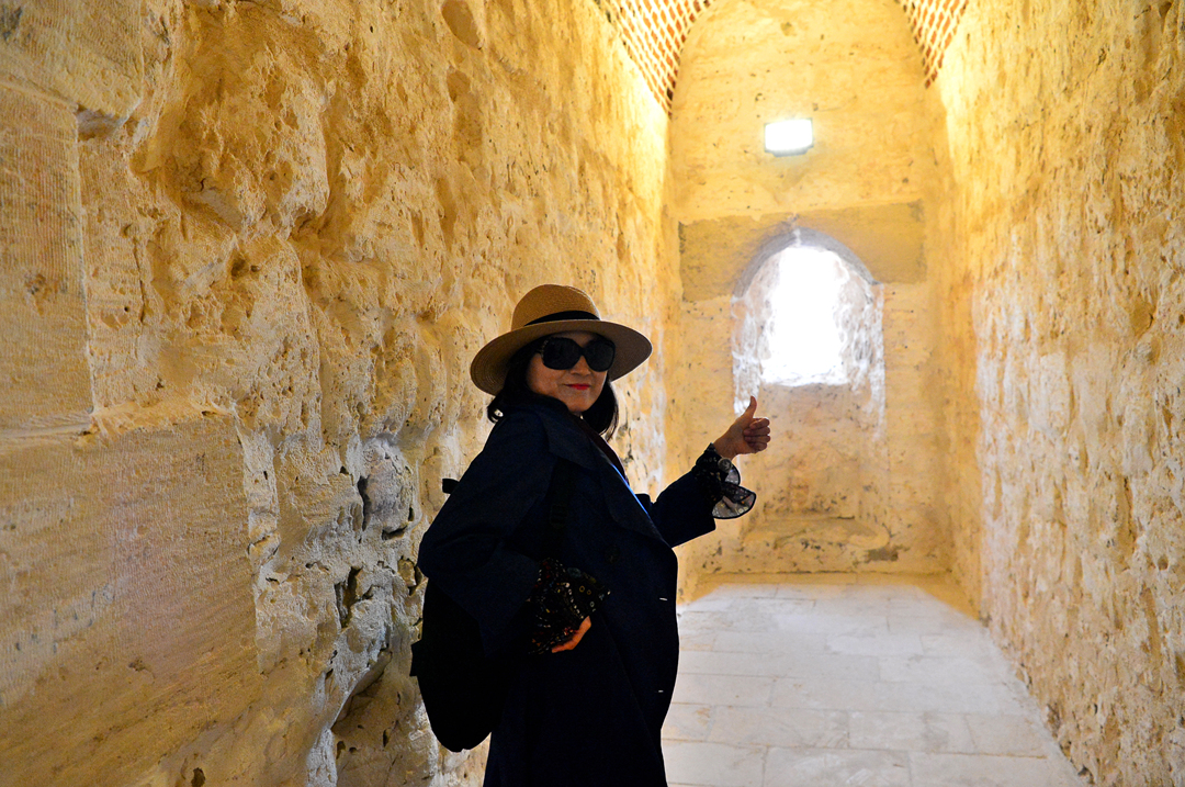 요새의 광장에서 잠시 휴식을 취하는데 지중해의 거센 바람이 요새 안까지 거세게 불어온다.