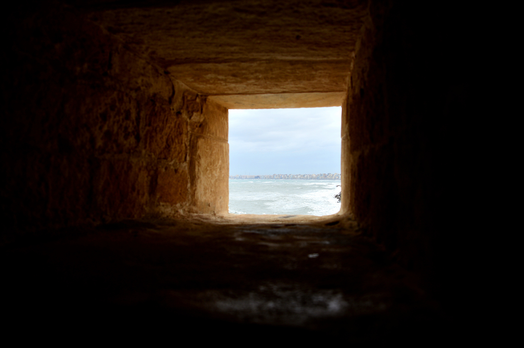 성채의 작은 창으로는 넘실거리는 지중해의 파도 모습이 보인다.