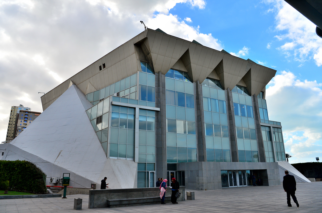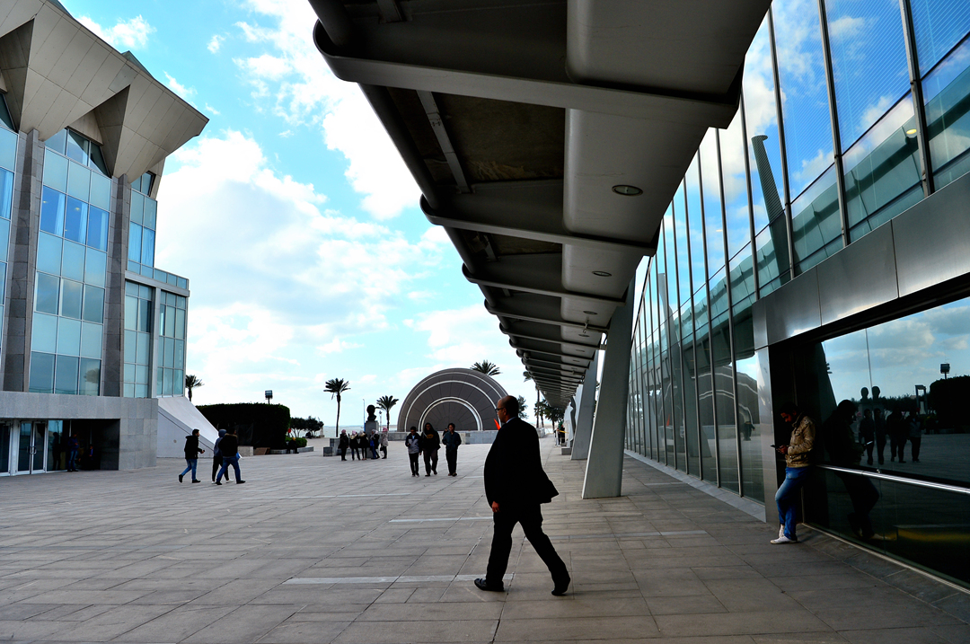 도서관 앞 광장에서 본 알렉산드리아 도서관 외관이다.