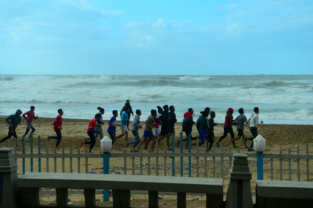 잔뜩 흐린 날씨임에도 불구하고 해변을 달리는 건각들도 보인다.