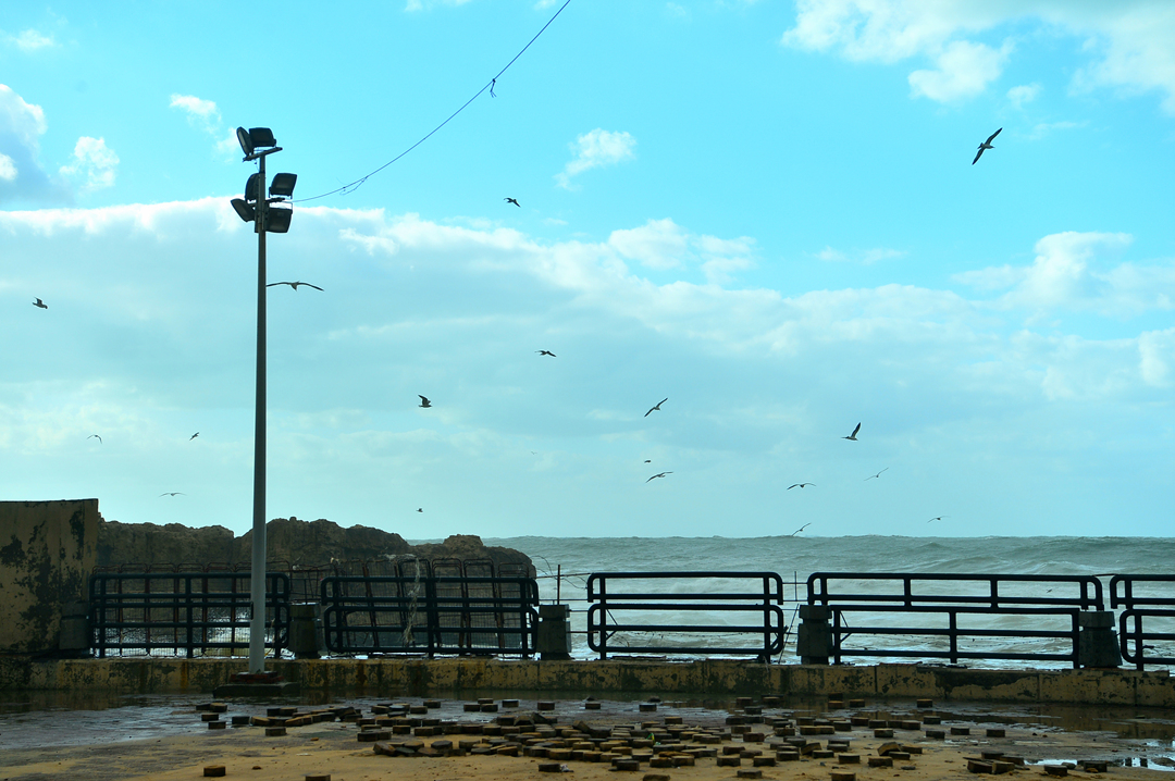 방파제 위에서 지중해의 거친 파도를 즐기는 친구들도 있다.