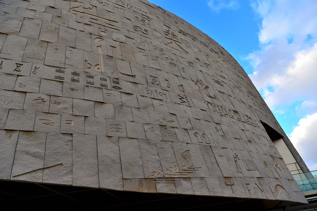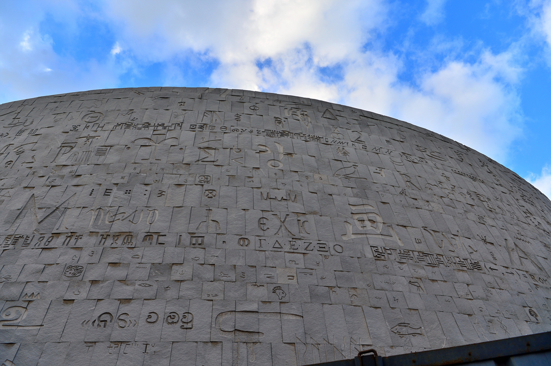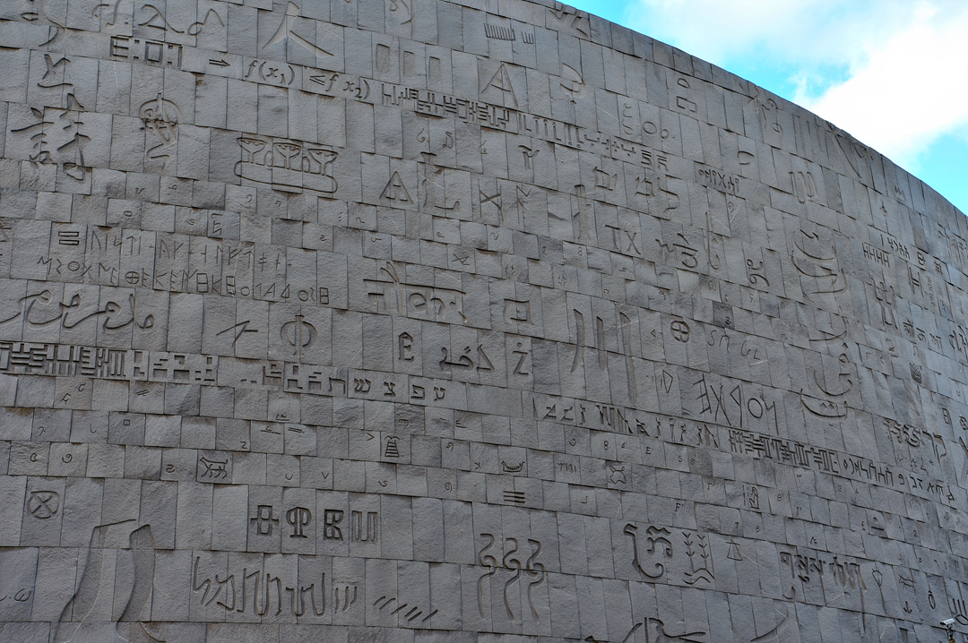 인류가 사용했던, 사용하고 있는 모든 문자가 건물 외벽에 새겨져 있다.